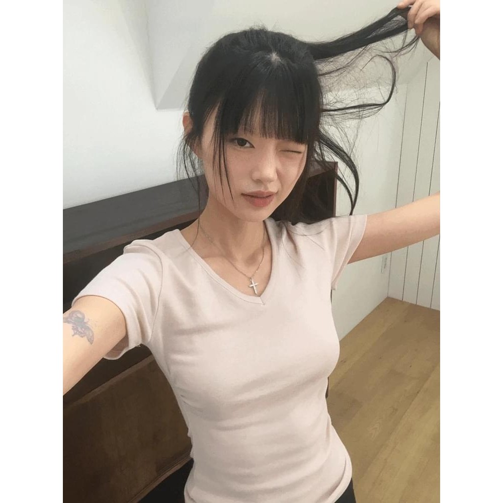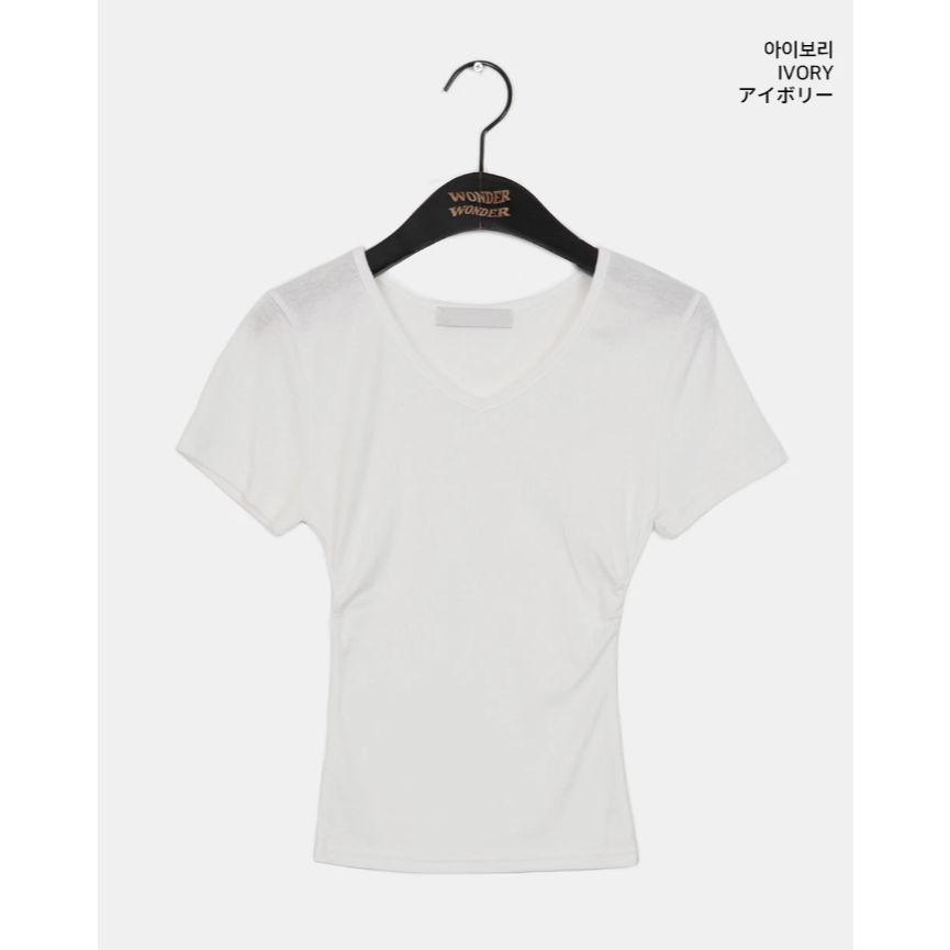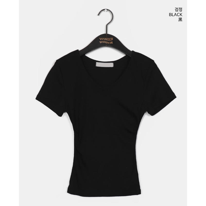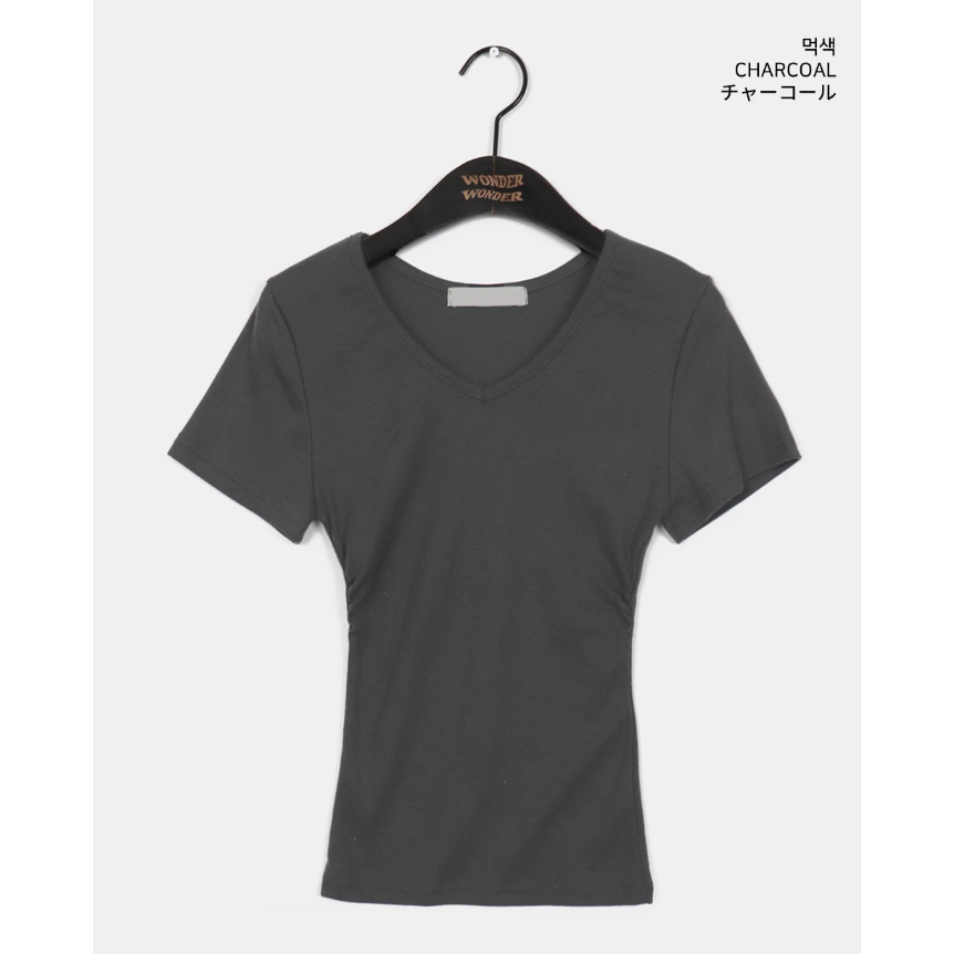 Codibook|韓國 wonderwonder 側邊抓褶V領短袖T恤[預購]短袖上衣 女裝黑,FREE|墨色,FREE|梅蘭灰色,FREE|象牙白,FREE|可可亞,FREE|粉紅色,FREET-shirtsCodibook 韓國女裝購物平台