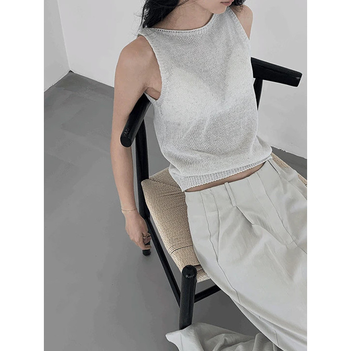 Codibook|韓國 MAENIQUE 簡約抓褶圓領亞麻針織背心[預購]無袖 圓領背心 女裝象牙白|燕麥|天藍色|黑色Tanks & CamisolesCodibook 韓國女裝購物平台