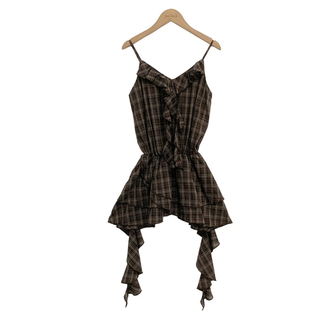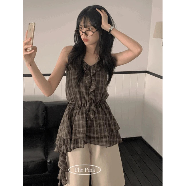 Codibook|韓國 thepink 不對稱格紋荷葉邊綁帶上衣[預購]雪紡襯衫 女裝咖啡色,free|黑色,freeShirts & BlousesCodibook 韓國女裝購物平台