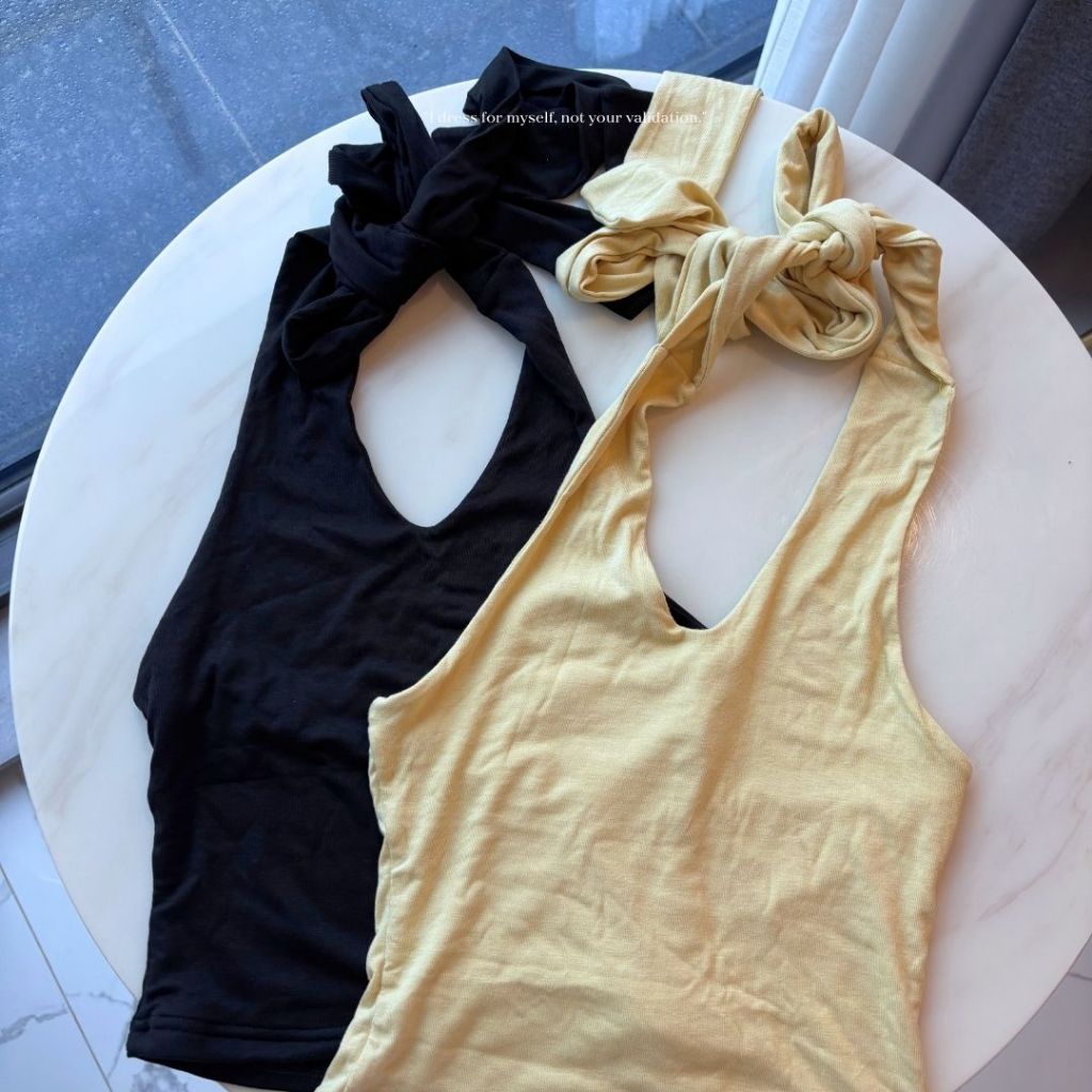 【DOMISS自訂】辣感回頭率! 新增色-綁帶掛脖露背背心-2色 (現貨)黃色|黑色Tanks & CamisolesDOMISS 朵蜜絲