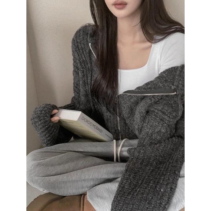 Codibook|韓國 henique 15%羊毛連帽拉鍊外套 – 7色可選[預購]拉鍊外套 針織外套 女裝深灰色|淺米色|深米色|咖啡色|卡其色|灰色|藍色JacketsCodibook 韓國女裝購物平台