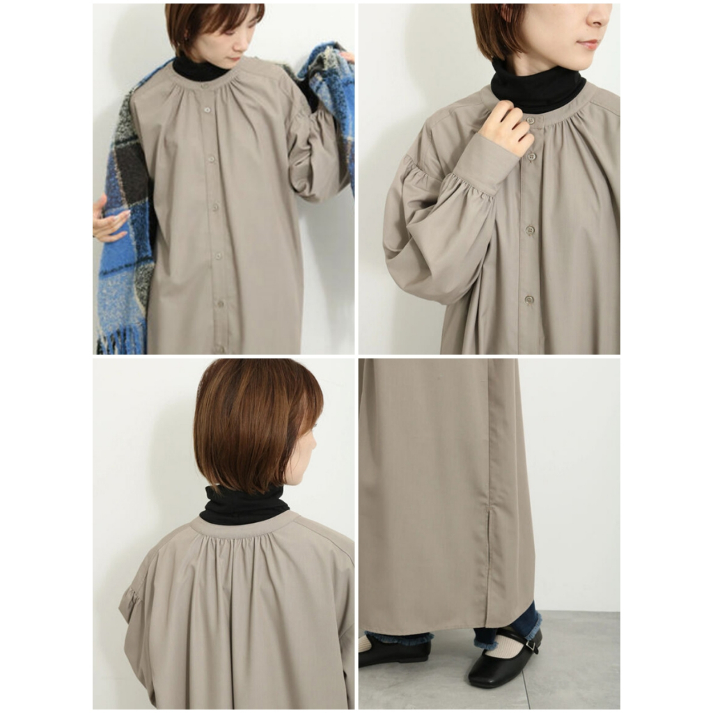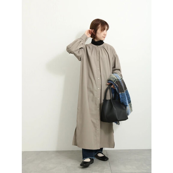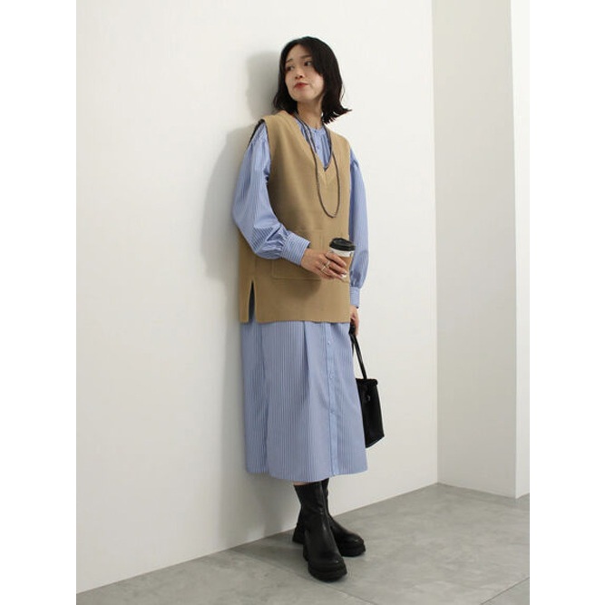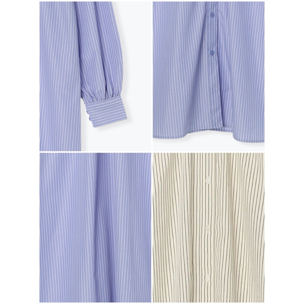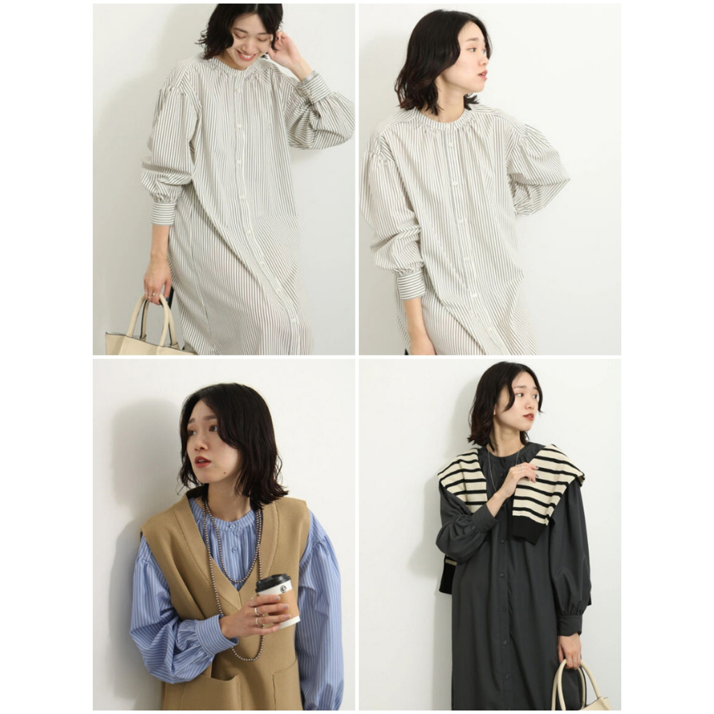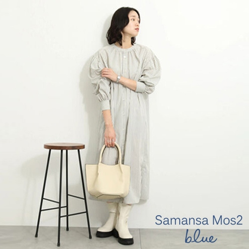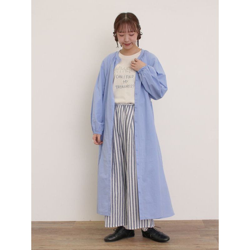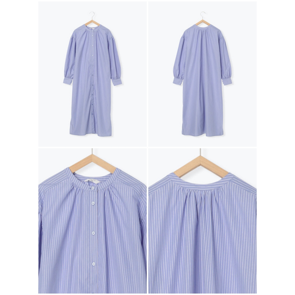 Samansa Mos2 blue 直條紋/素面開襟襯衫式連身洋裝(FG34L0H0180)象牙色F|炭灰色F|卡其色F|藍色Fearth music&ecology Select Store