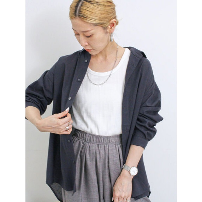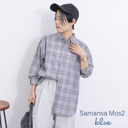 Samansa Mos2 blue 素色/格紋亞麻混紡翻領襯衫(FG43L0A0180)灰色F|炭灰色F|米色F|棕色F|藍色FShirts & Blousesearth music&ecology Select Store