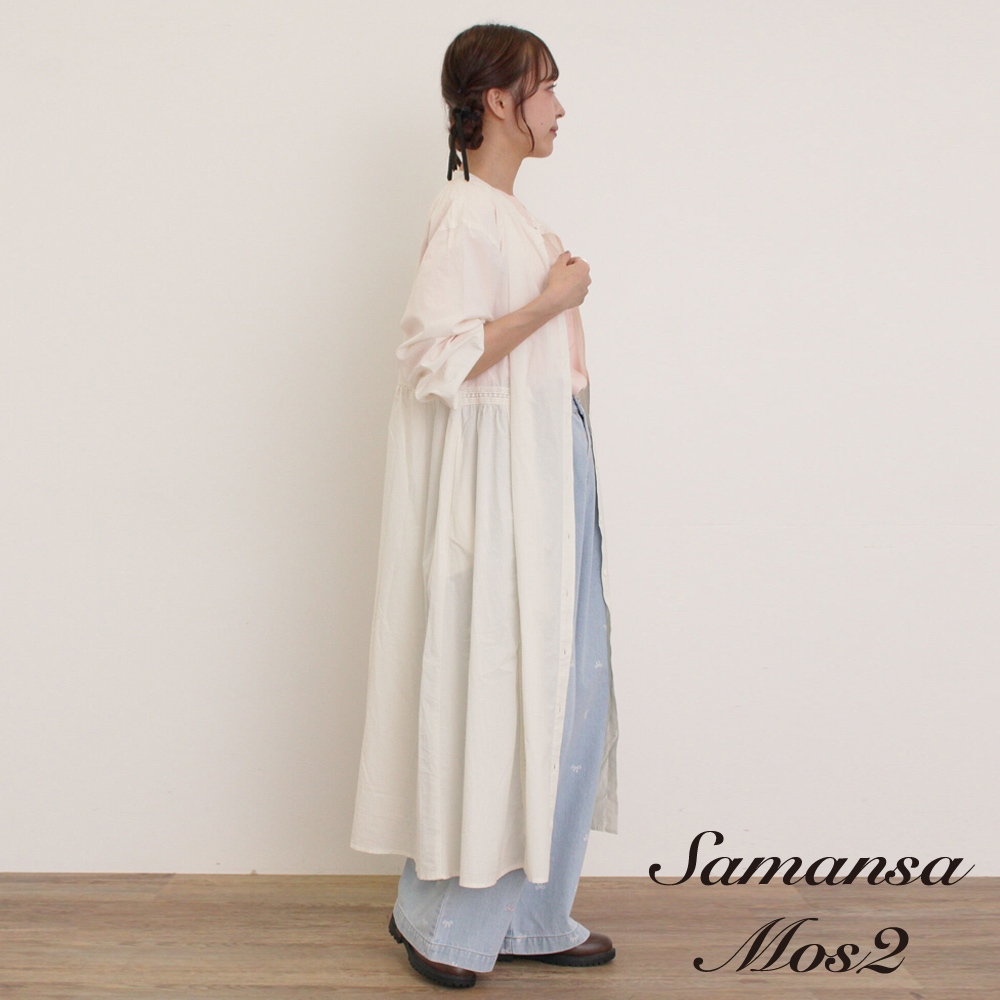 Samansa Mos2 側邊蕾絲花紋排釦無領襯衫洋裝(0F000669110)本白M|黑色M|藍色Mearth music&ecology Select Store
