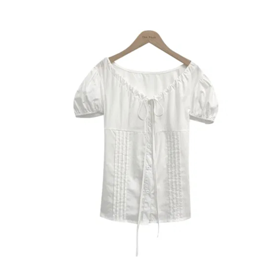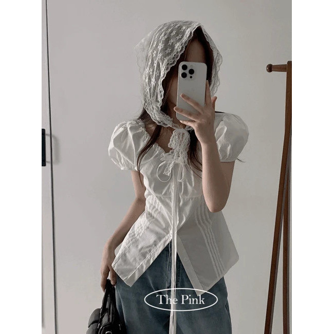 Codibook|韓國 thepink V領打褶綁帶荷葉袖短袖襯衫[預購]雪紡襯衫 女裝白色,free|黑色,freeShirts & BlousesCodibook 韓國女裝購物平台