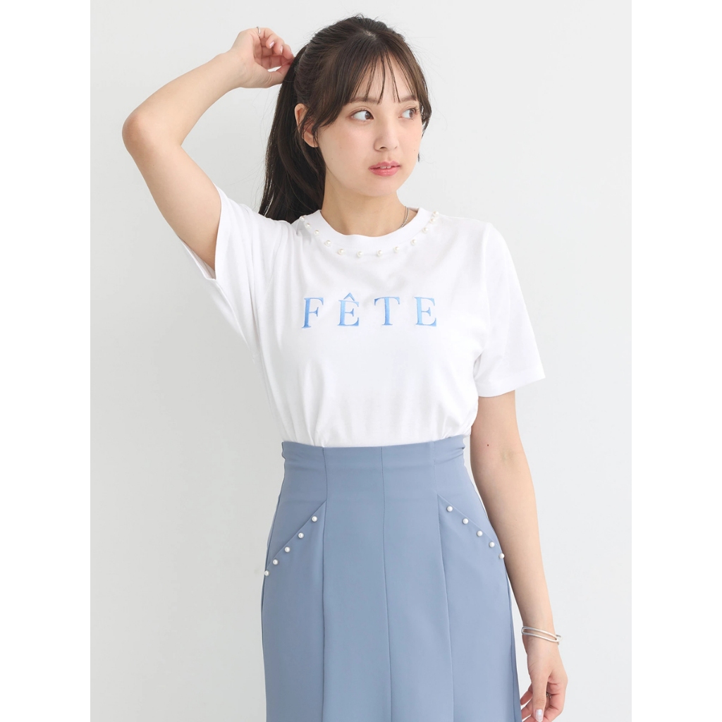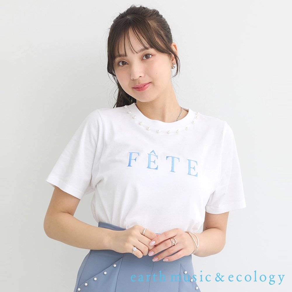 earth music&ecology 珍珠裝飾LOGO刺繡設計短袖T恤(1M43L1C0630)深藍色F|白色F|棕色FT-shirtsearth music&ecology Select Store