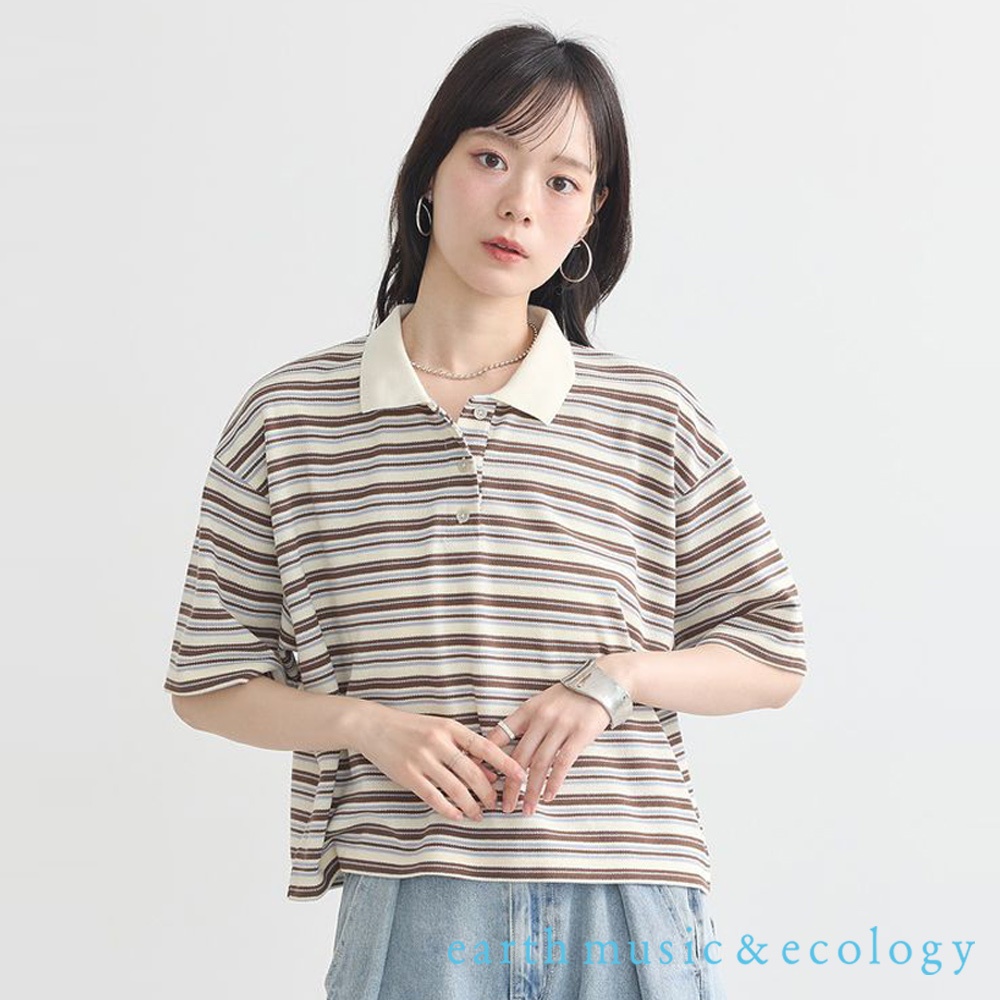 earth music&ecology 復古條紋圖案短袖落肩POLO衫(01000718600)橫條藍F|橫條粉紅FPolo Shirtsearth music&ecology Select Store