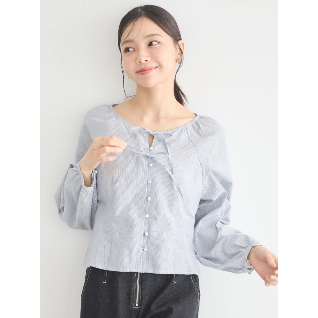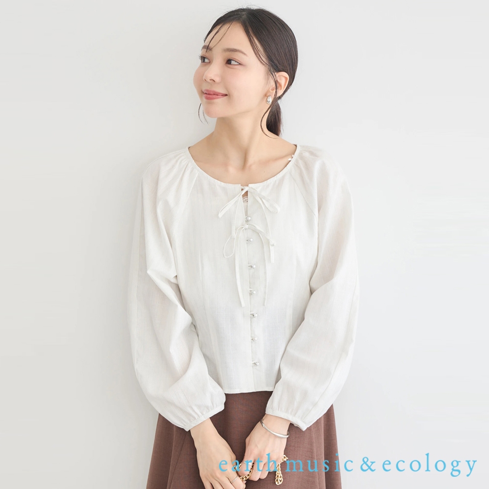 earth music&ecology 光澤感條紋綁帶珍珠釦長袖襯衫/上衣(1M43L0A0530)本白F|粉紅色F|藍直條紋FShirts & Blousesearth music&ecology Select Store