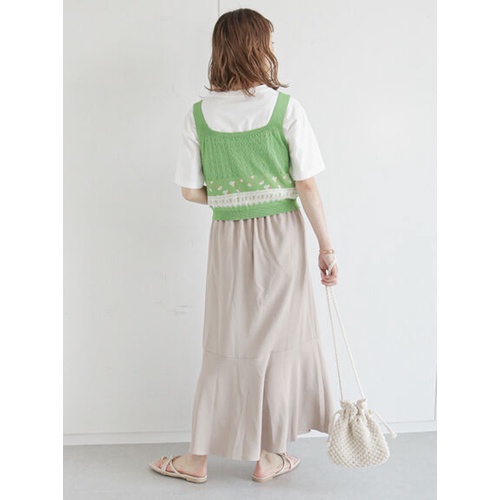 earth music&ecology 【SET ITEM】蝴蝶結抓褶造型針織上衣+羅紋背心(01000134400)