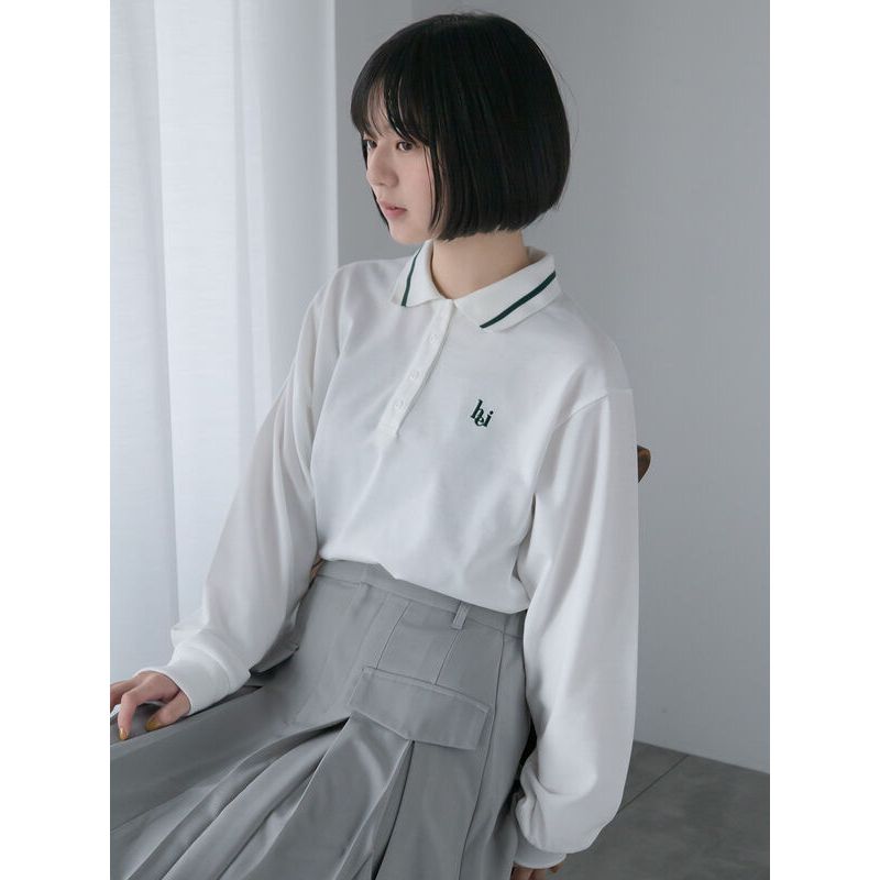 ehka sopo 英文刺繡單線翻領半排釦Polo衫(0F000563010)本白F|灰色F|綠色F|淡青色FPolo Shirtsearth music&ecology Select Store