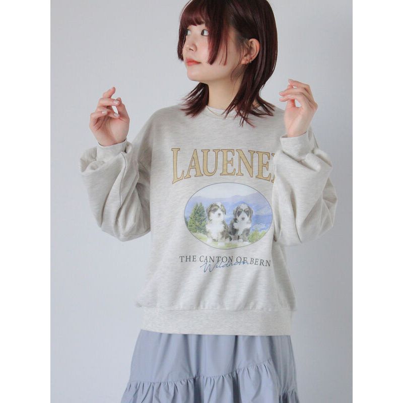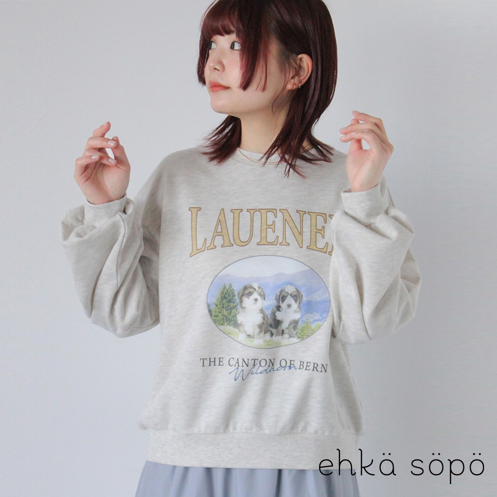 ehka sopo 可愛狗狗圖案印花大學T(0F000491210)灰色F|粉紅色F|黃色FSweatshirtsearth music&ecology Select Store