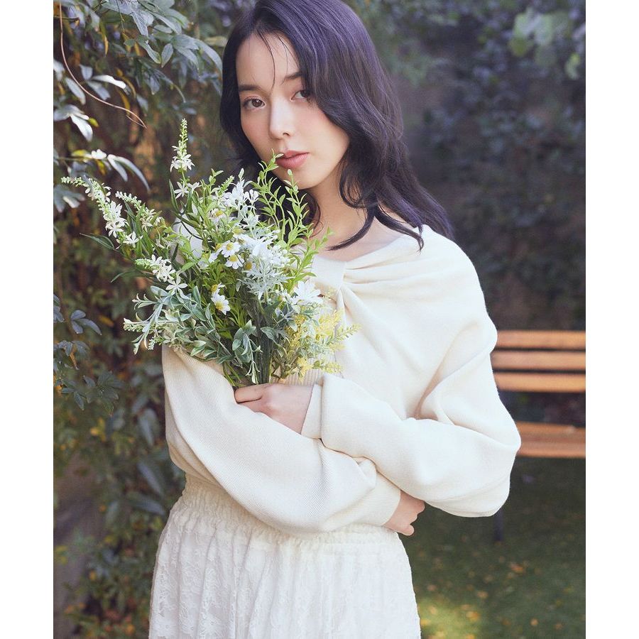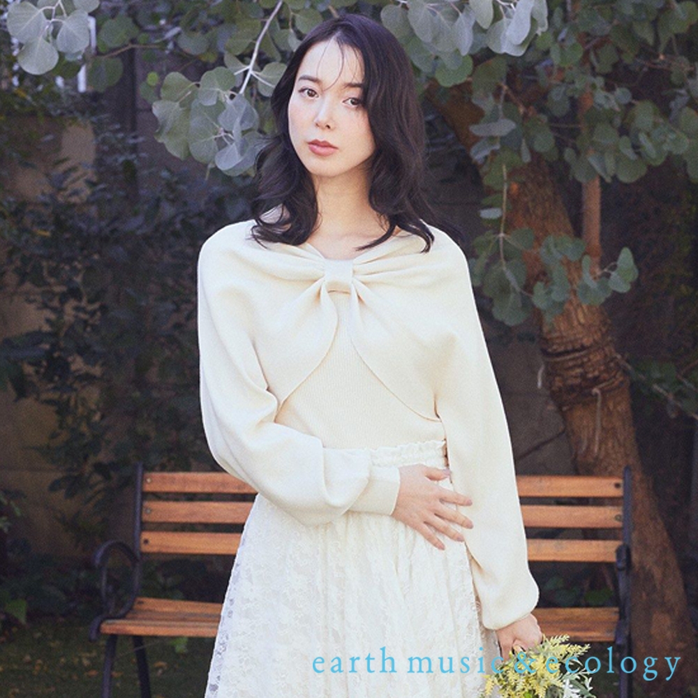 earth music&ecology 【SET ITEM】蝴蝶結抓褶造型針織上衣+羅紋背心(01000134400)象牙色F|粉紅色F|深藍色Fearth music&ecology Select Store