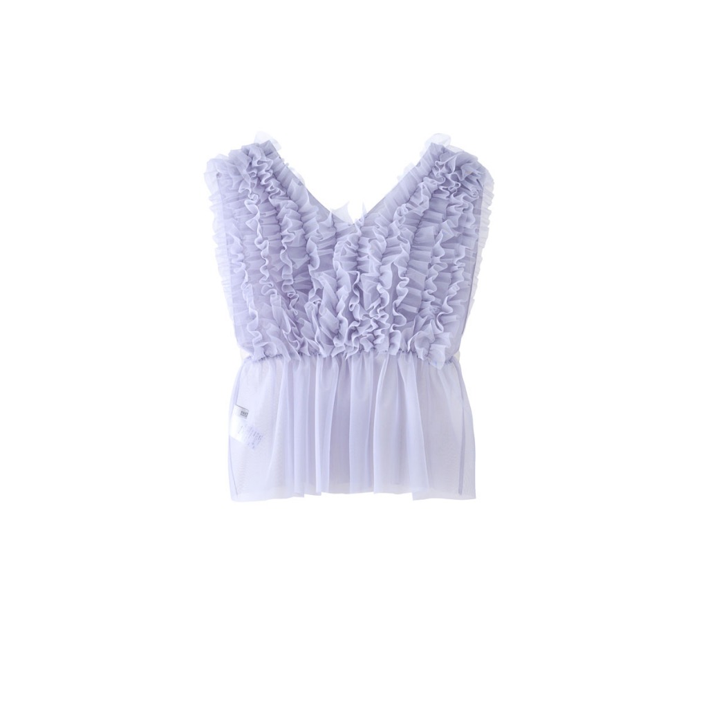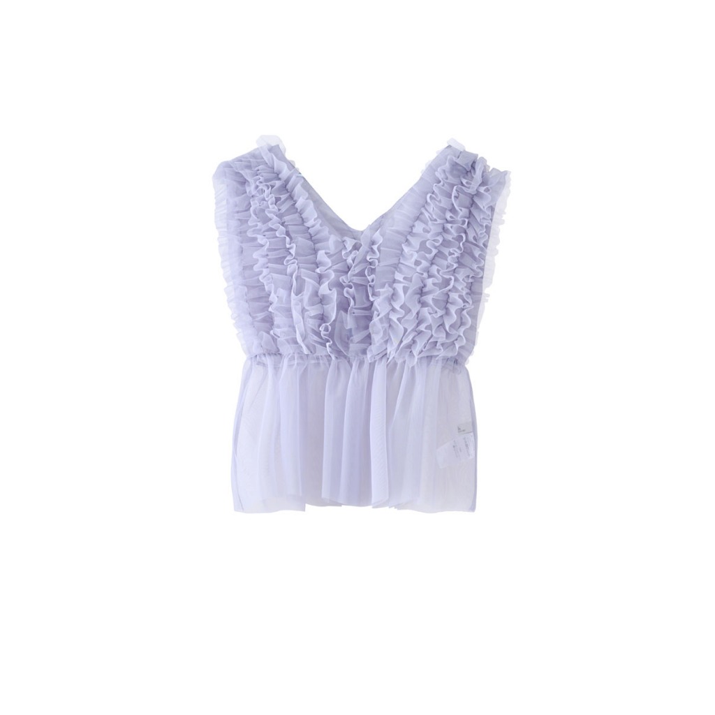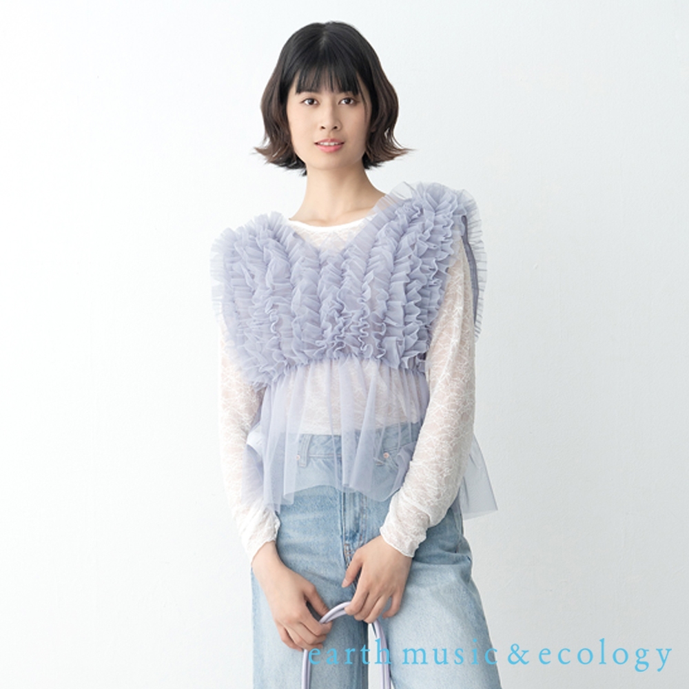 earth music&ecology 層層網紗V領背心(0S000005100)灰色F|黑色FT-shirtsearth music&ecology Select Store