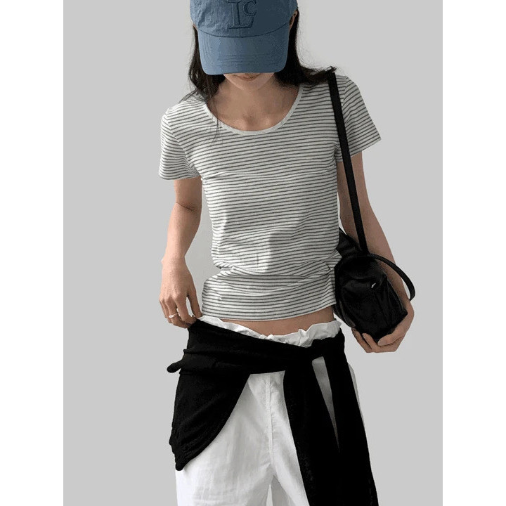 Codibook|韓國 MAENIQUE 直紋圓領短袖T恤[預購]短袖上衣 T恤 女裝象牙白|天藍色|海軍藍T-shirtsCodibook 韓國女裝購物平台