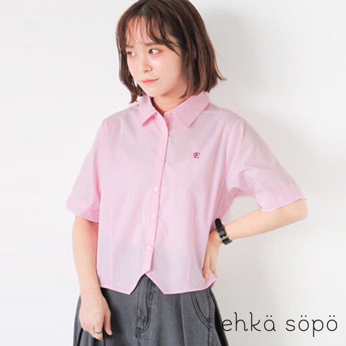 ehka sopo 下擺開岔字母刺繡襯衫(FF46L0A1280)本白F|粉紅色F|黃色F|淡青色FShirts & Blousesearth music&ecology Select Store