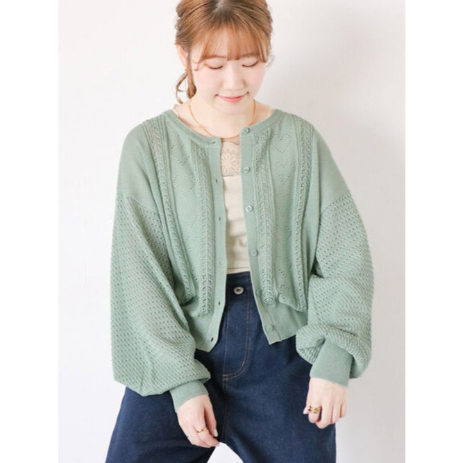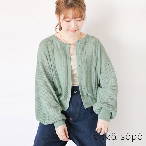 ehka sopo 特色心型縷空織紋造型圓領排釦開襟衫(FF42L2D1080)象牙色F|灰色F|紅色F|薄荷綠Fearth music&ecology Select Store