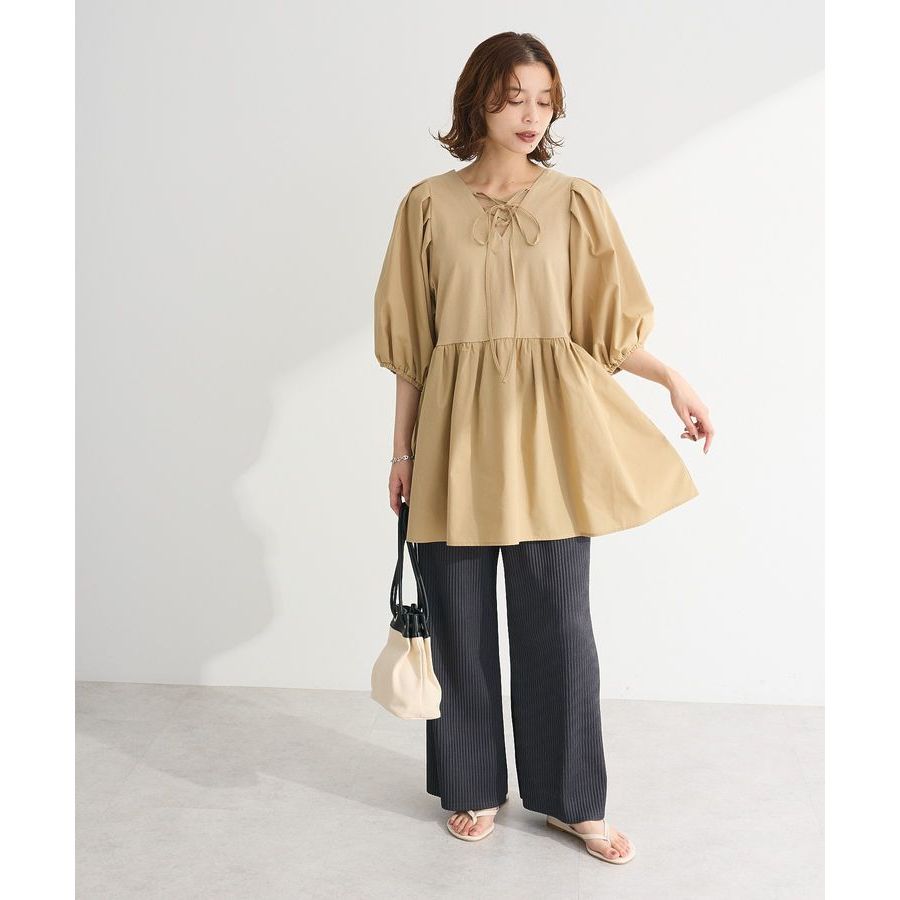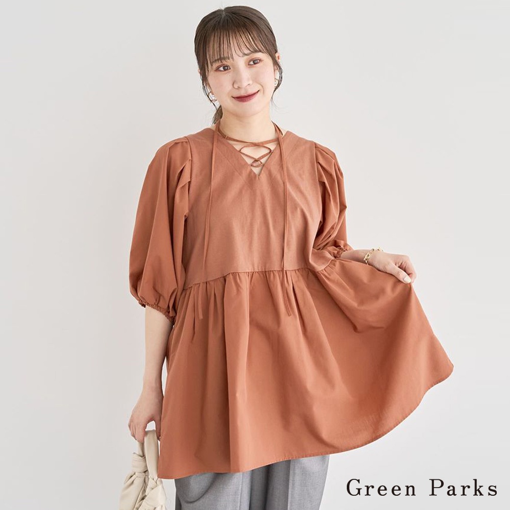 Green Parks 2WAY前後兩穿綁帶束腰抓褶長版上衣(06000878800)本白F|黑色F|米色F|棕色FT-shirtsearth music&ecology Select Store