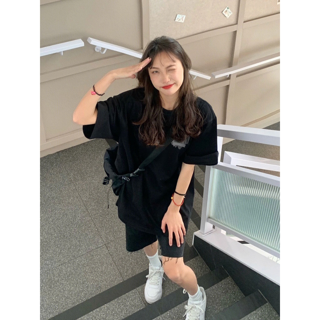 假期出遊必備! t恤女 黑色上衣 美式短袖 oversize t恤 短袖上衣女 蓋屁股上衣 氣質上衣 情侶裝 個性上衣