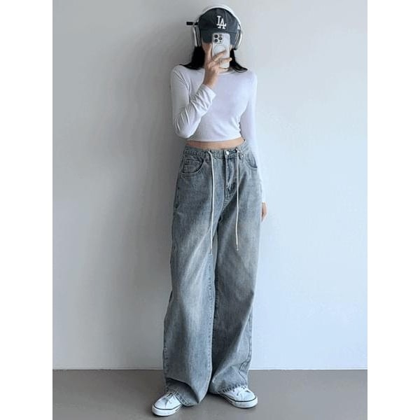 Codibook|韓國 paknamae 繫帶調節水洗牛仔寬褲[預購]牛仔褲 女裝天空藍,Free|黑丹寧,FreeCodibook 韓國女裝購物平台