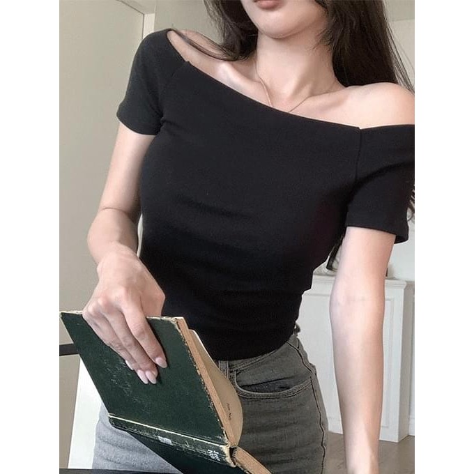 Codibook|韓國 henique 露肩短袖緊身T恤[預購]短袖上衣 女裝象牙白|黑色T-shirtsCodibook 韓國女裝購物平台