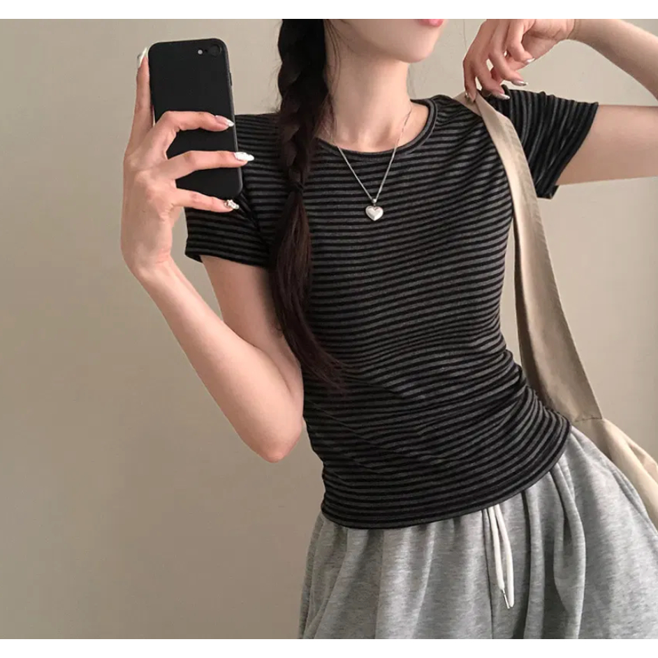 Codibook|韓國 E-PICK 布丁圓領修身短袖T恤[預購]短袖上衣 女裝白色,Free|灰色,Free|黑色,Free|灰米白色,FreeT-shirtsCodibook 韓國女裝購物平台
