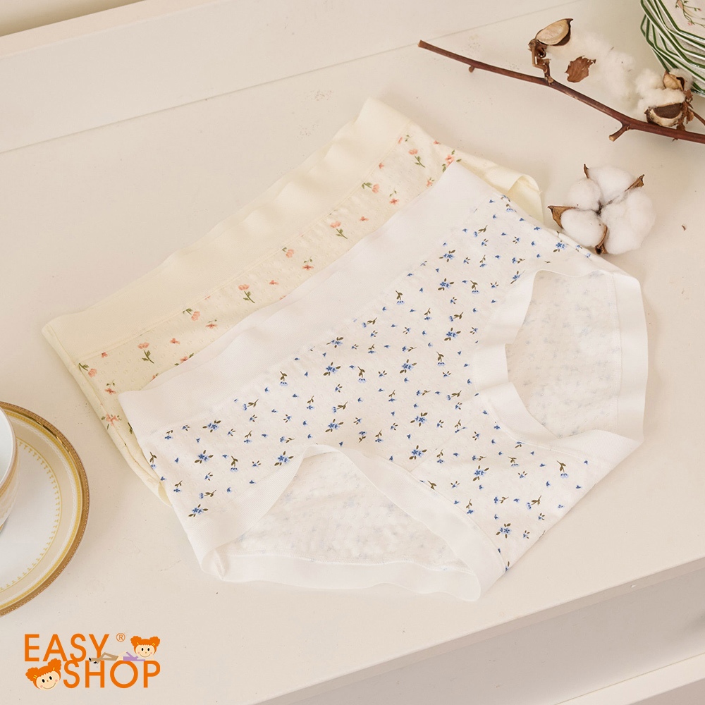 【EASY SHOP】iMEWE-嬰兒棉英倫小花中腰平口內褲-2件組(白底藍花+黃底橙花)M|L|LLPantiesEASY SHOP官方直營