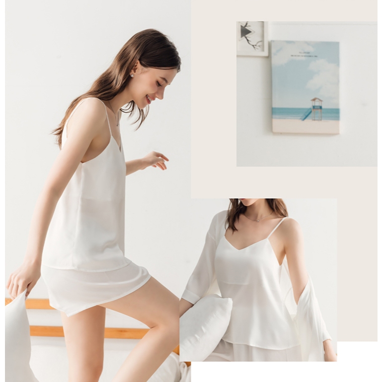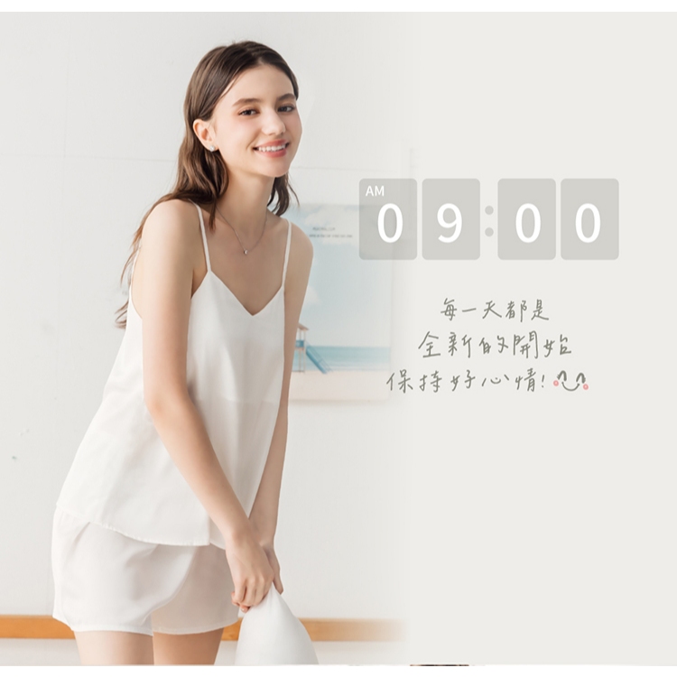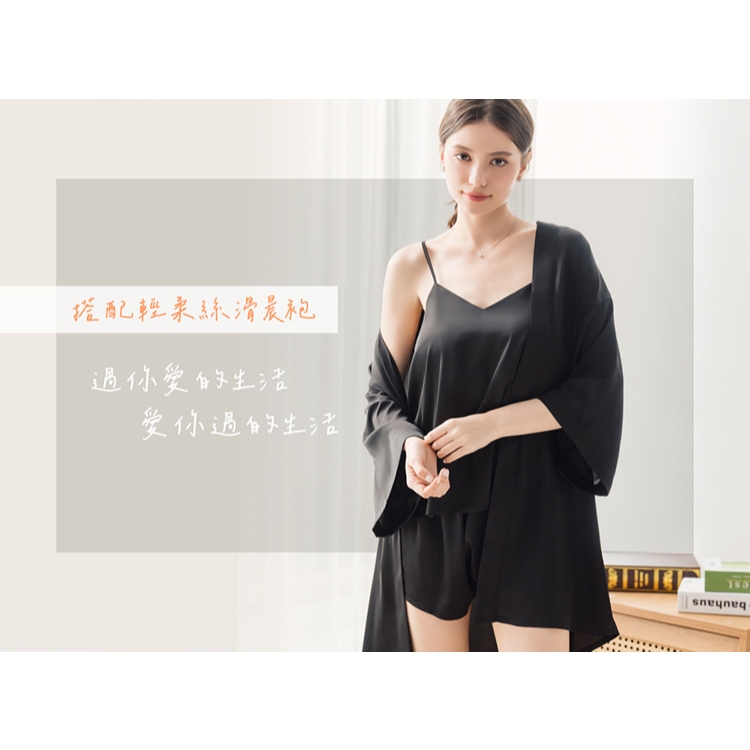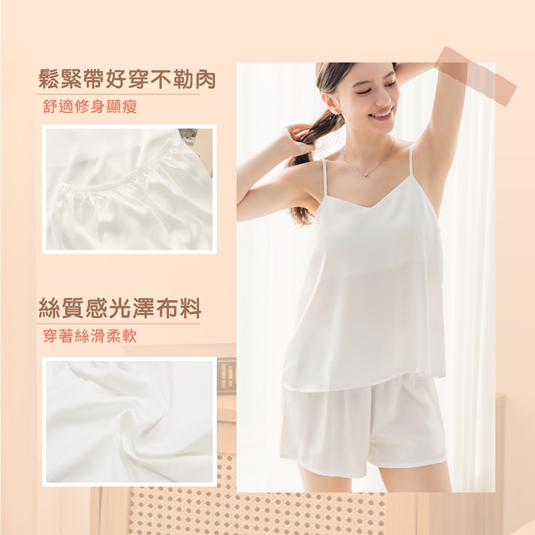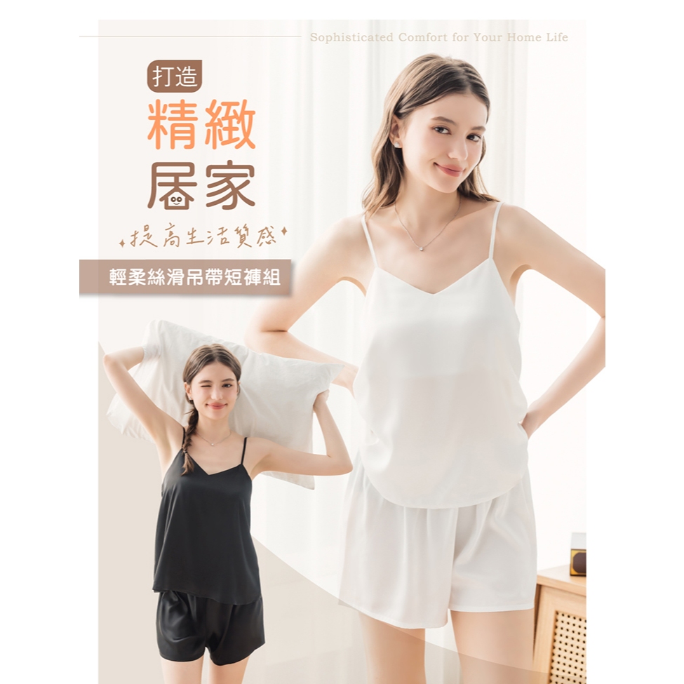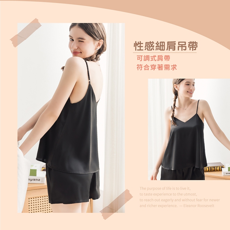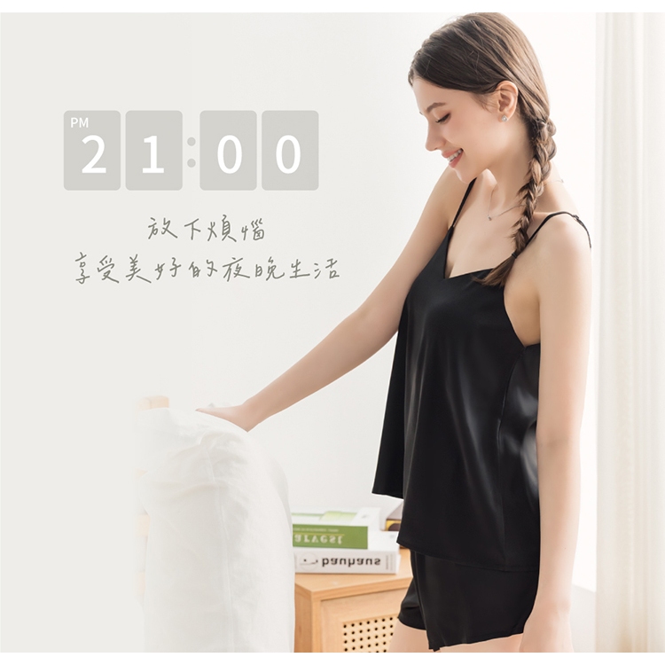 【EASY SHOP】輕柔絲滑吊帶居家睡衣+闊腿短褲2件組-經典黑M|LNight DressesEASY SHOP官方直營