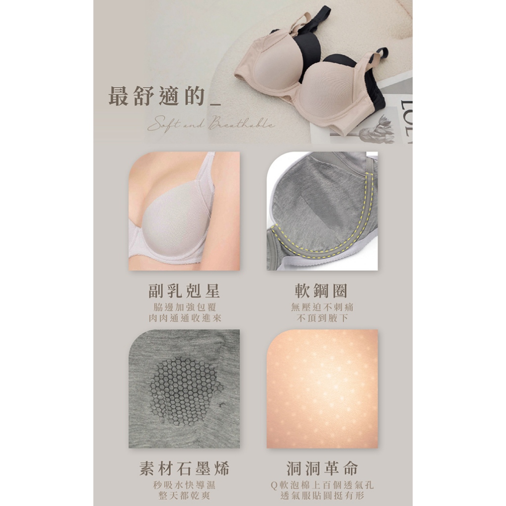 【EASY SHOP】Audrey-石墨烯 素体美人- 舒適無痕側包副乳軟鋼圈內衣-粉嫩膚