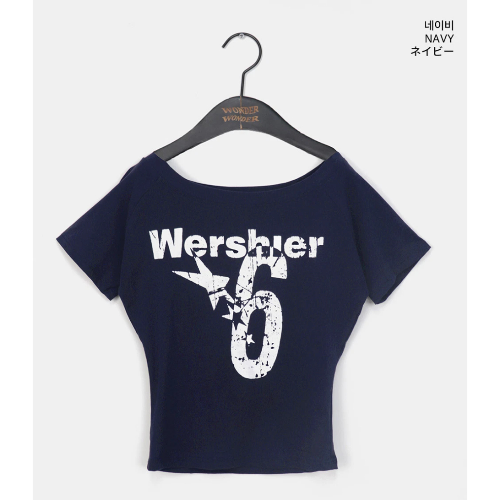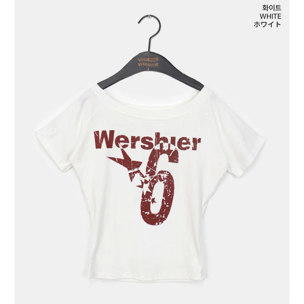 Codibook|韓國 wonderwonder 破裂印花露肩短袖T恤[預購]短袖上衣 T恤 女裝白色,FREE|灰色,FREE|海軍藍,FREET-shirtsCodibook 韓國女裝購物平台