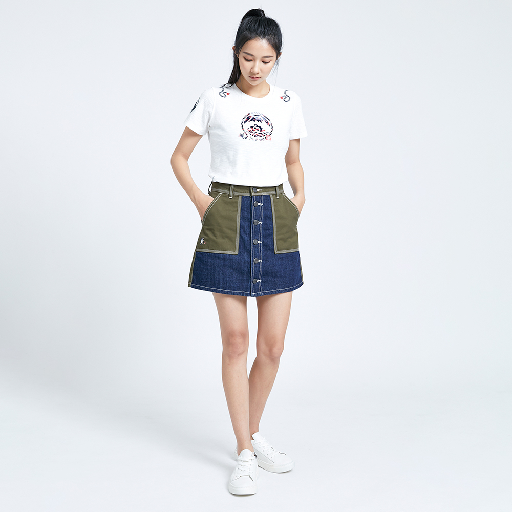 江戶勝 女款 勝太郎系列 工裝短裙(灰綠色)M|L|SEDWIN 官方旗艦店