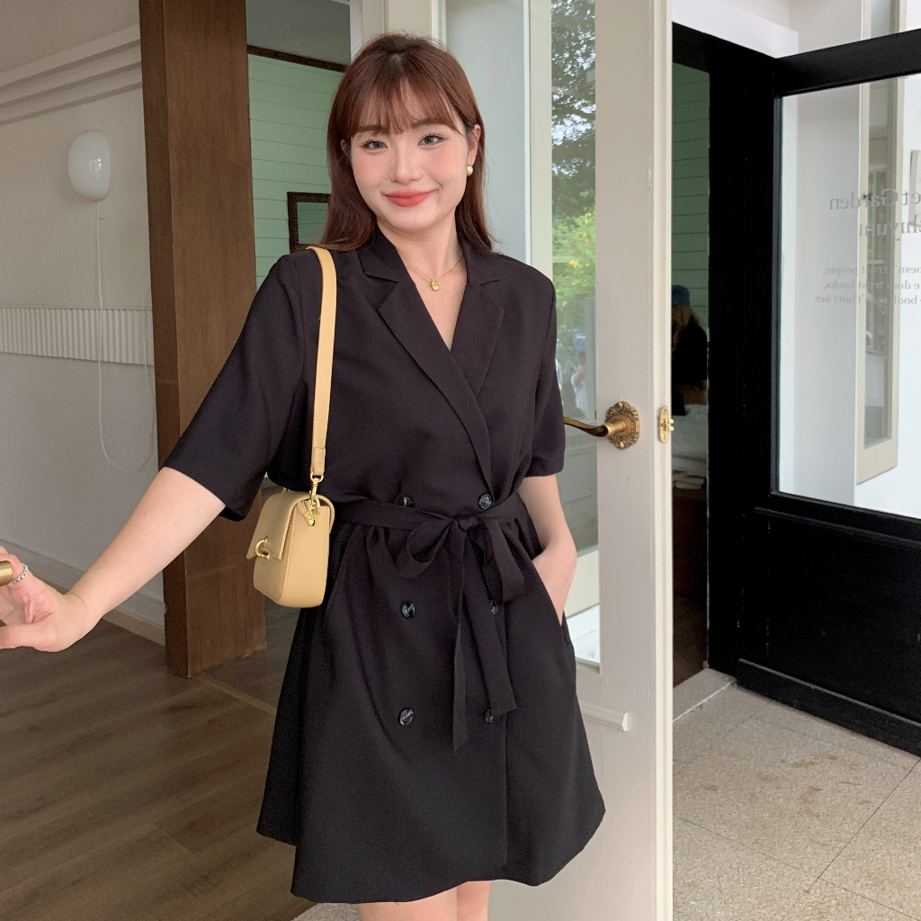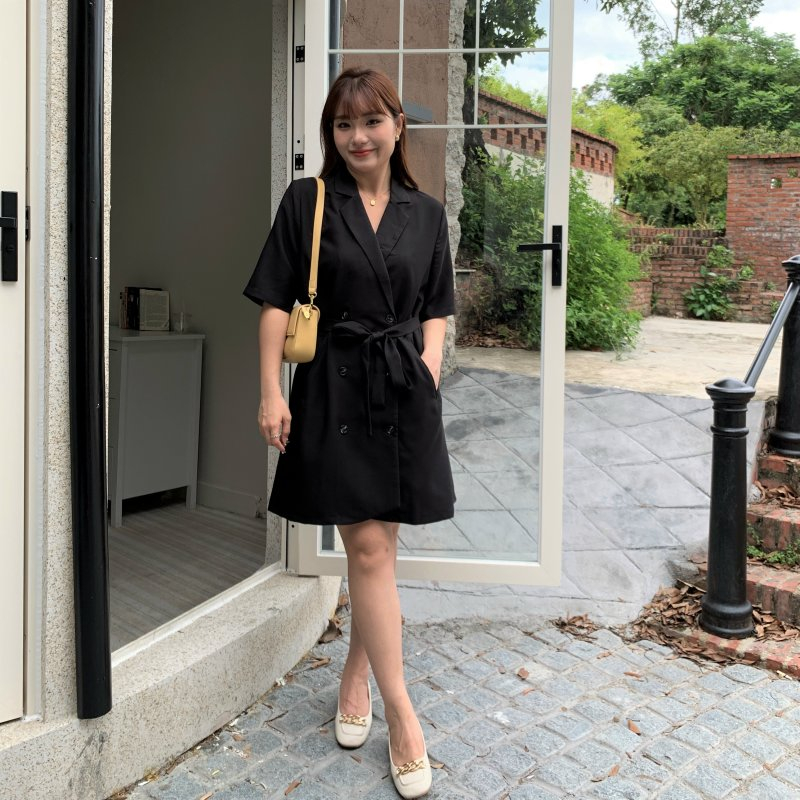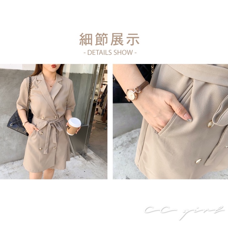 CCGIRL中大尺碼 俐落西裝領排釦連身五分袖洋裝(附綁帶)-共2色-適L~5L《31250》大尺碼女裝 中大尺碼洋裝經典黑,5L|伯爵奶茶,L|伯爵奶茶,3L|伯爵奶茶,XL|伯爵奶茶,2L|伯爵奶茶,4L|經典黑,L|經典黑,XL|經典黑,2L|經典黑,3L|經典黑,4L|伯爵奶茶,5LCCGIRL中大尺碼女裝