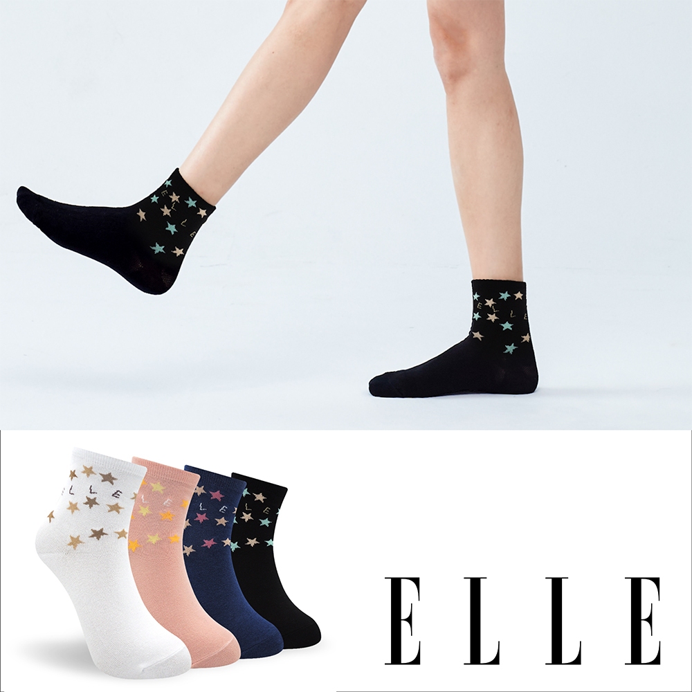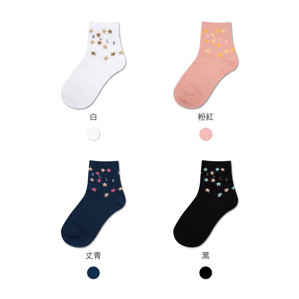 【ELLE】 滿天繁星點點踝襪 星星 圓點 襪子 少女襪 棉襪 休閒襪 女襪 長襪白|丈青|粉紅|黑SocksELLE 襪子男內 官方旗艦店
