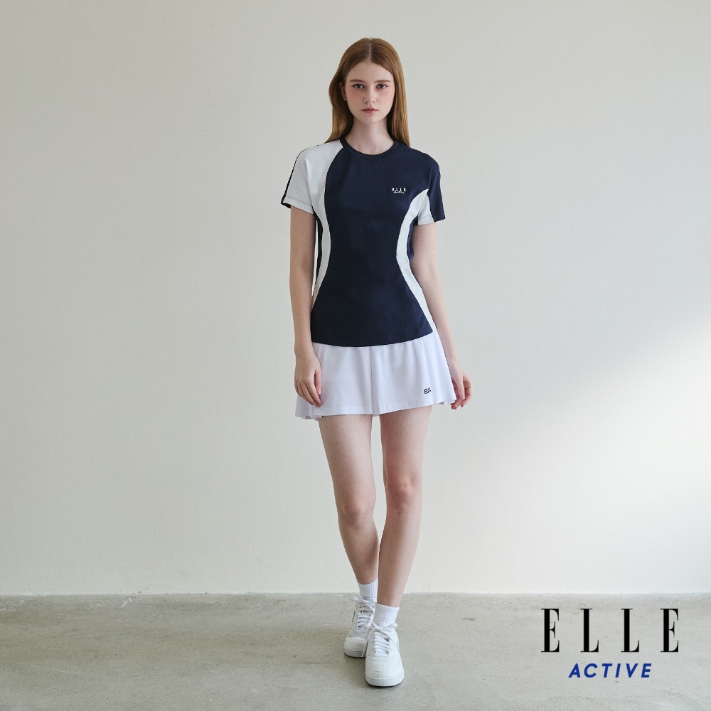 【ELLE ACTIVE】女款 修身剪裁拼色機能短袖T恤-深藍色 (EA25S1W1610-39)
