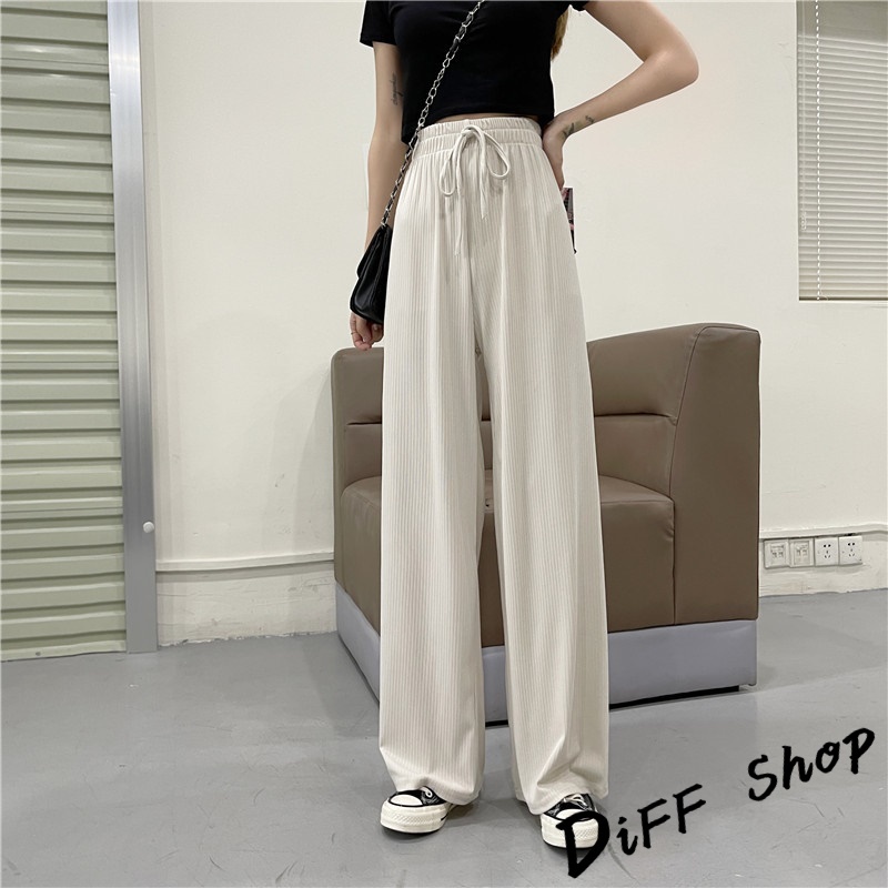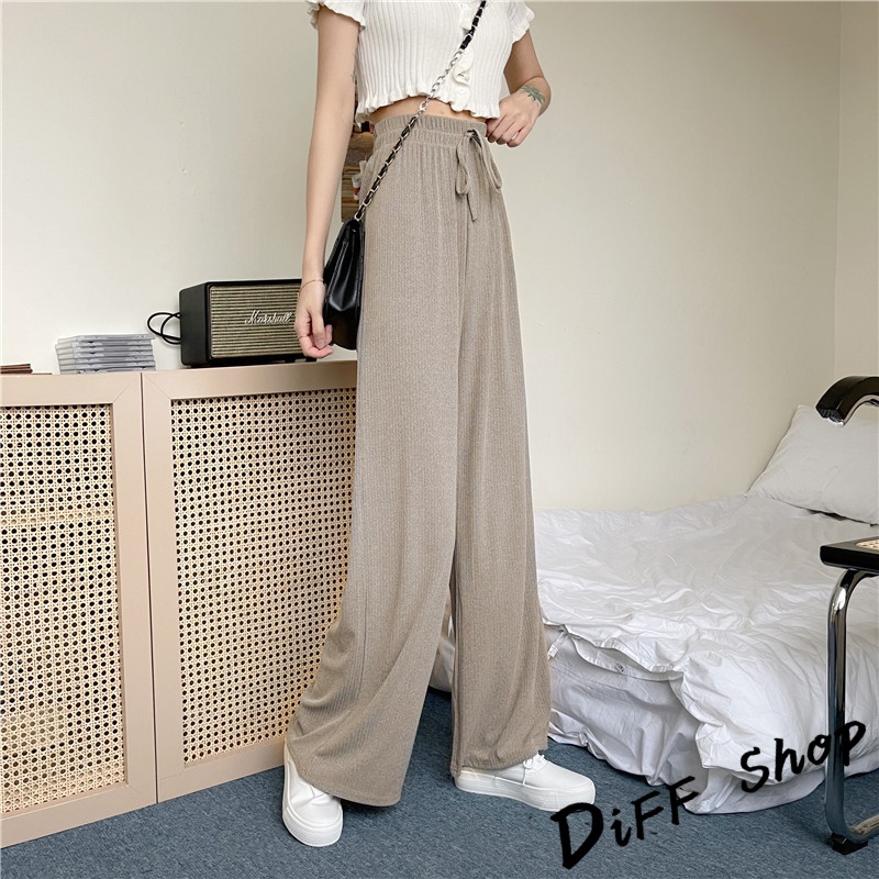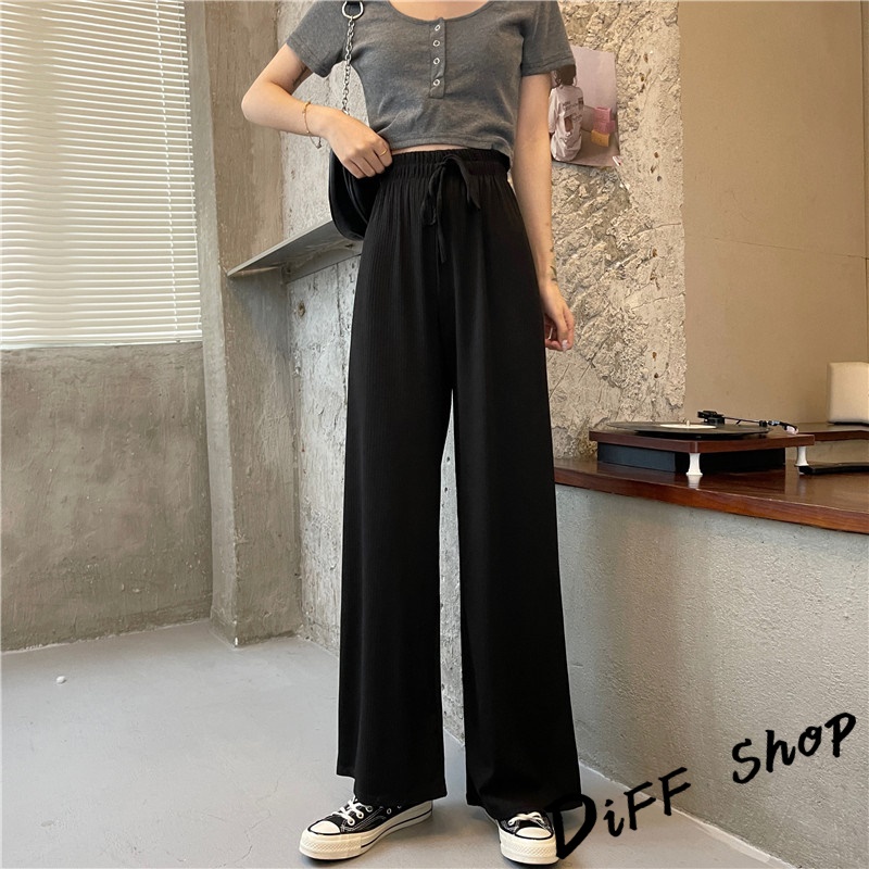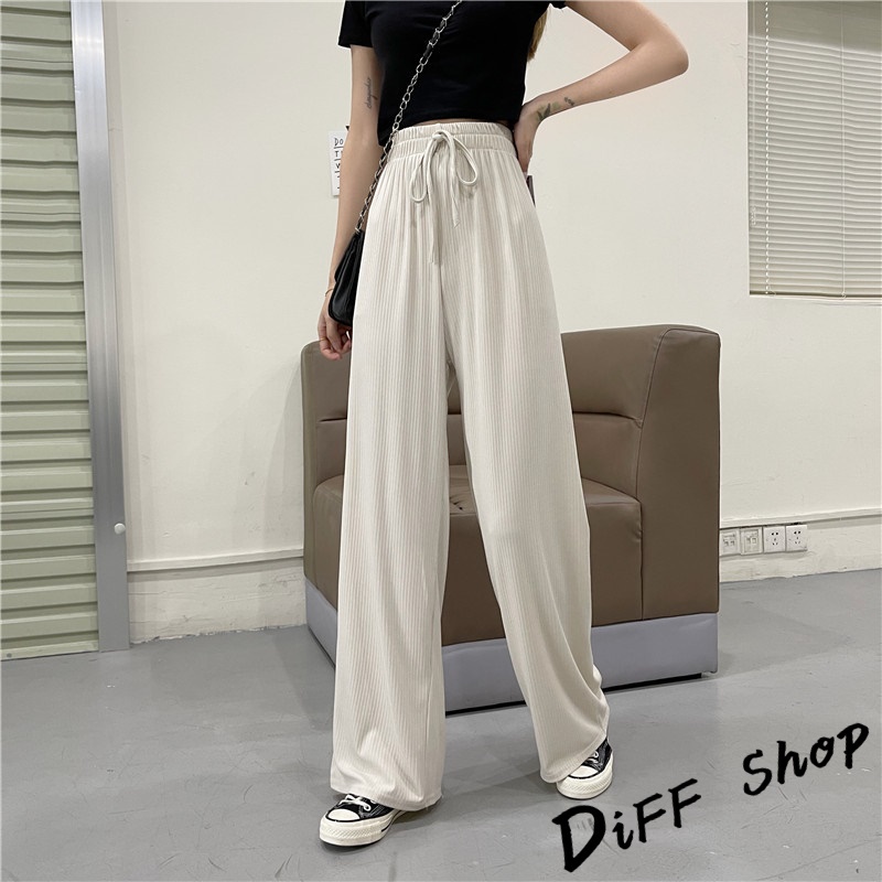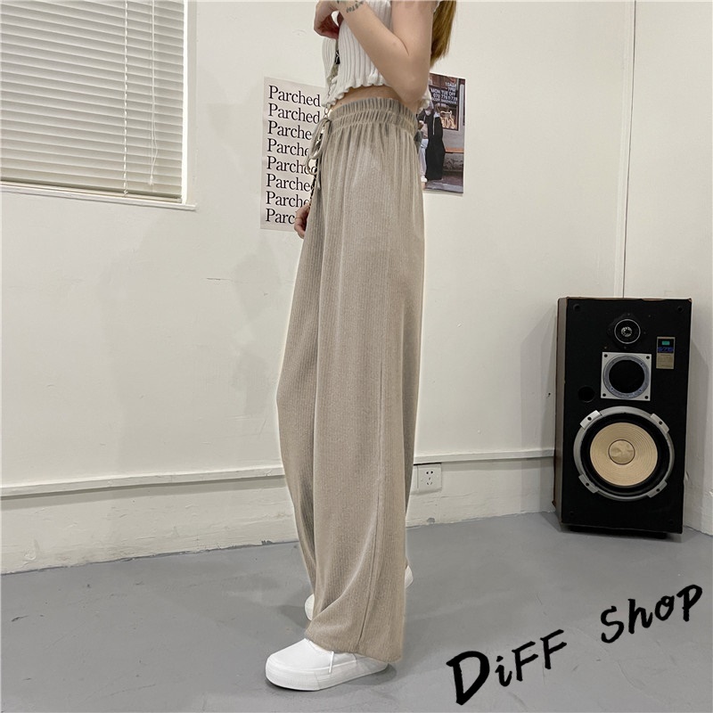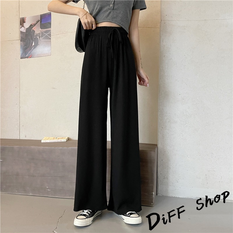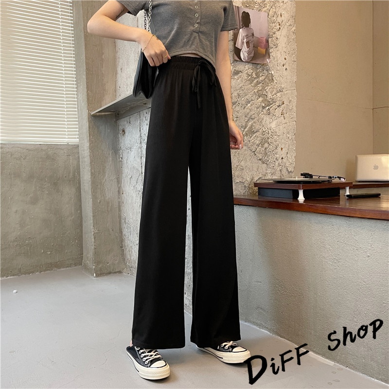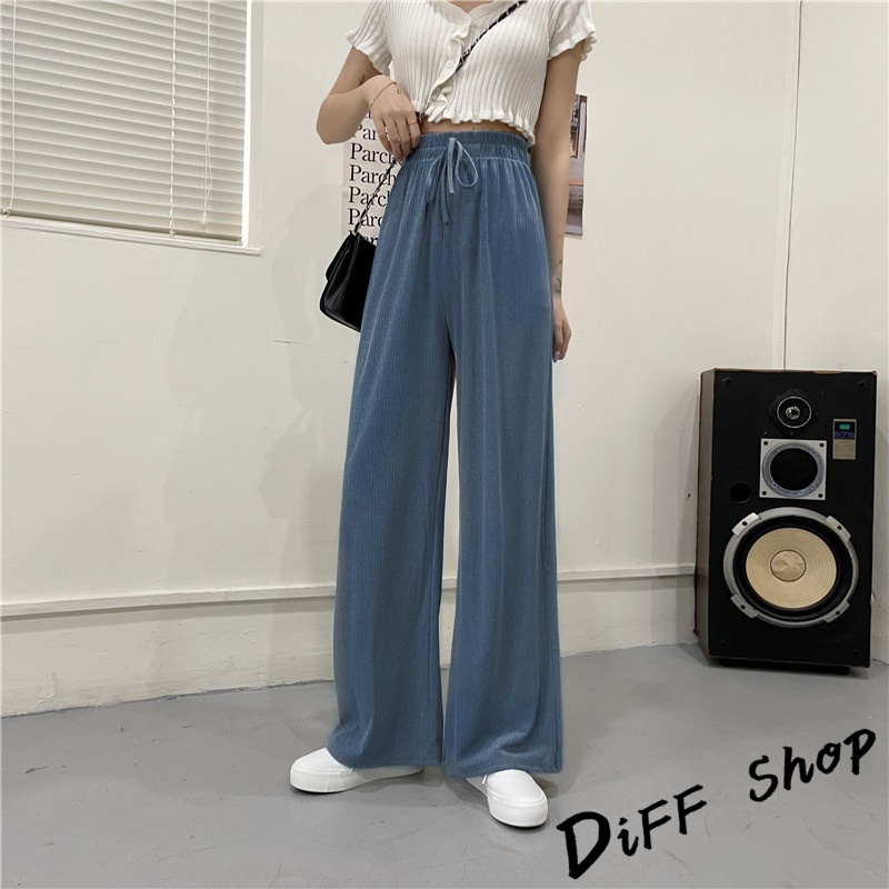 【DIFF】韓版直筒顯瘦高腰休閒寬褲 拖地褲 褲子 長褲 休閒褲 女裝 工裝褲 落地褲【P115】【P115】黑色|【P115】奶茶色|【P115】米白|【P115】藍PantsDiFF shop