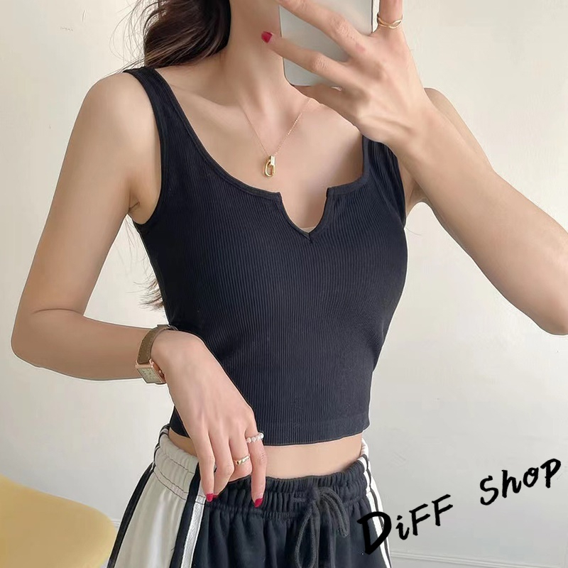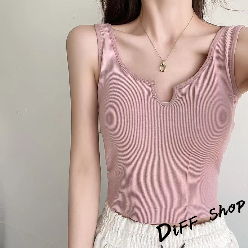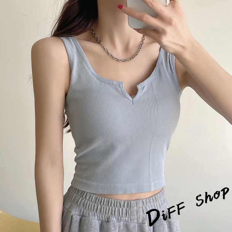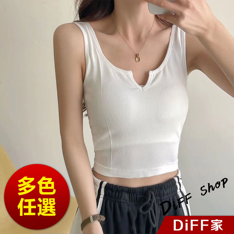 【DIFF】韓版設計感小眾V領顯瘦運動背心 帶胸墊免穿內衣 上衣 小可愛 女裝 衣服 短版上衣 短板上衣【V266】【V266】黑色|【V266】白色|【V266】粉色|【V266】綠色|【V266】藍色|【V266】灰色Tanks & CamisolesDiFF shop