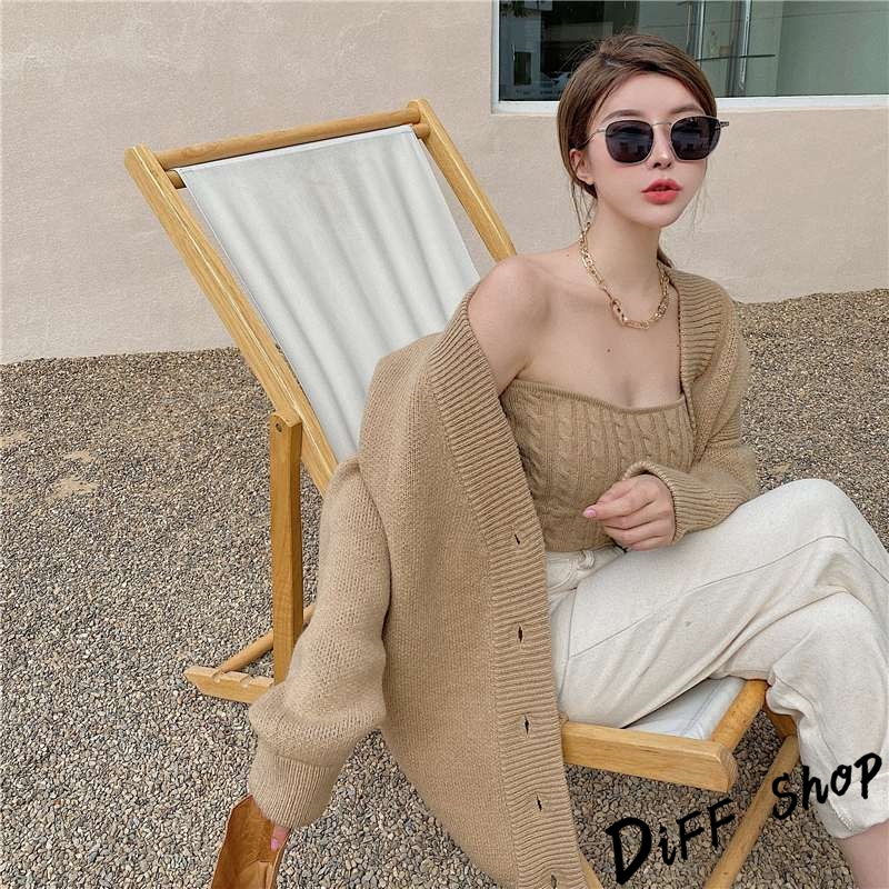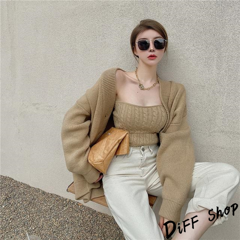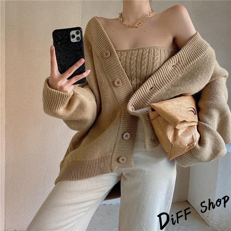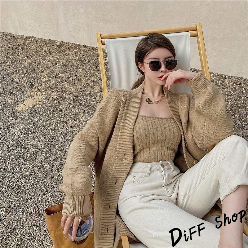 【DIFF】韓版設計感溫柔長版針織外套+復古麻花針織背心 套裝 針織上衣 毛衣 長袖上衣 女裝 衣服 小可愛【J248】【J248】奶茶色|【J248】米白Individual SetsDiFF shop