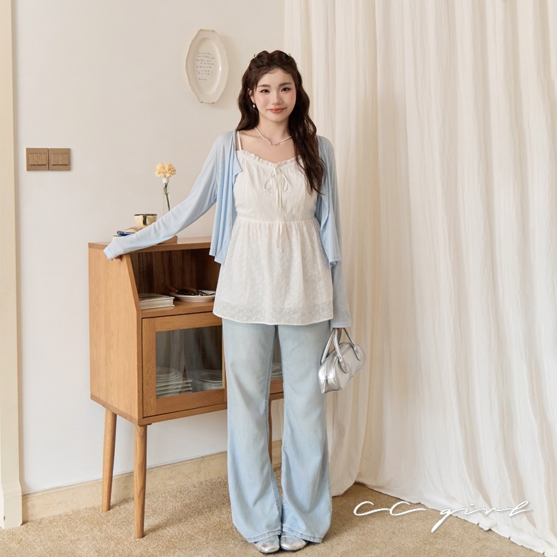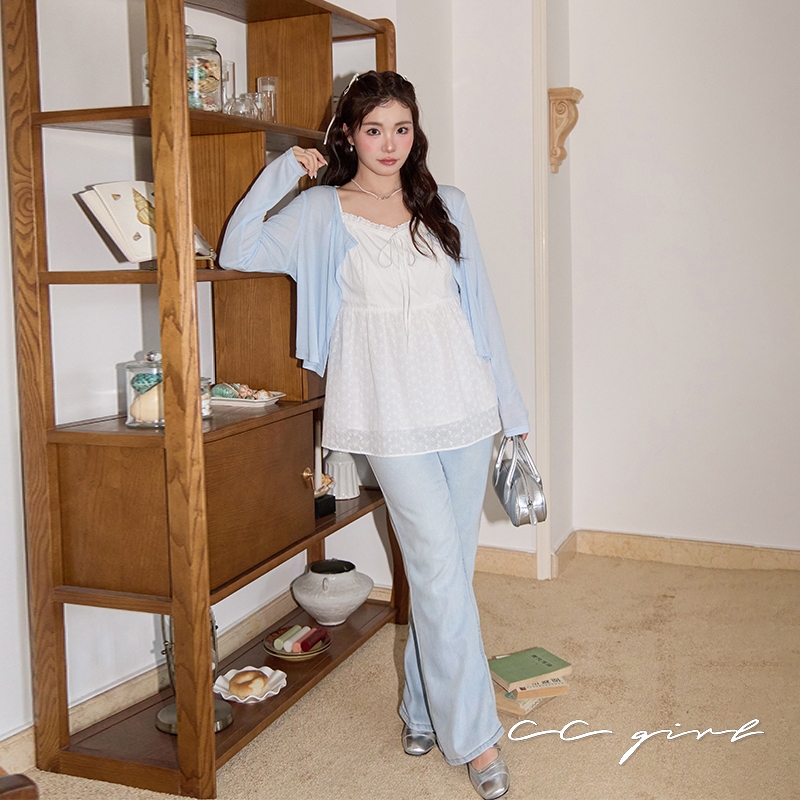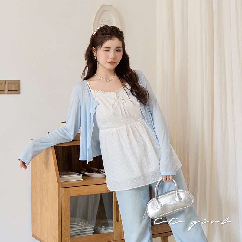 CCGIRL中大尺碼 蕾絲滾邊微皺空氣感拼接雕花布細肩小v領背心上衣-適XL~5L《20868》大尺碼女裝 中大尺碼上衣微皺空氣感拼接雕花布背心-XL|微皺空氣感拼接雕花布背心-2L|微皺空氣感拼接雕花布背心-3L|微皺空氣感拼接雕花布背心-4L|微皺空氣感拼接雕花布背心-5LTanks & CamisolesCCGIRL中大尺碼女裝