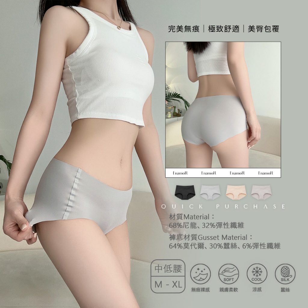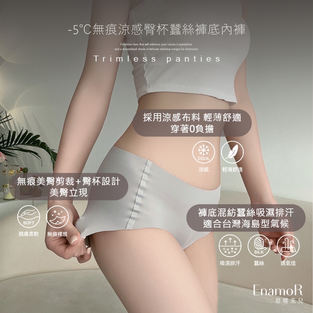 【EnamoR】aiR-5℃無痕蠶絲臀杯內褲【褲底加寬-中低腰】/獨家不卡臀美尻臀杯設計 涼感 夏天 女裝 奶蓋裙 _+百搭黑,M|百搭黑,L|隱形灰,L|必備膚,L|必備膚,XL|優雅紫,XL|百搭黑,XL|隱形灰,M|隱形灰,XL|必備膚,M|優雅紫,M|優雅紫,LPantiesEnamoR恩娜茉兒-官方旗艦店