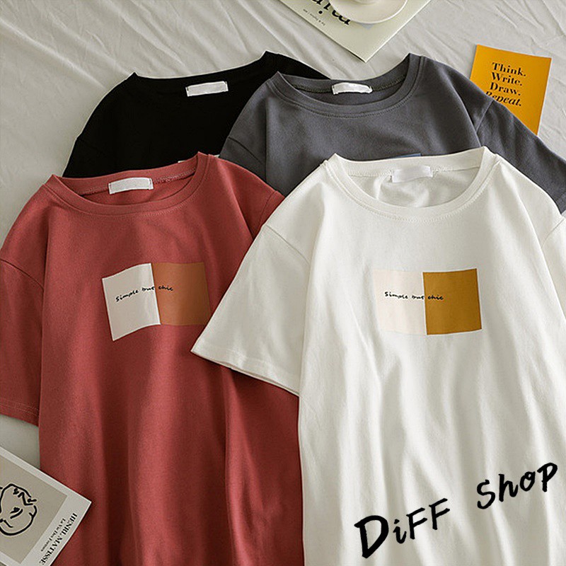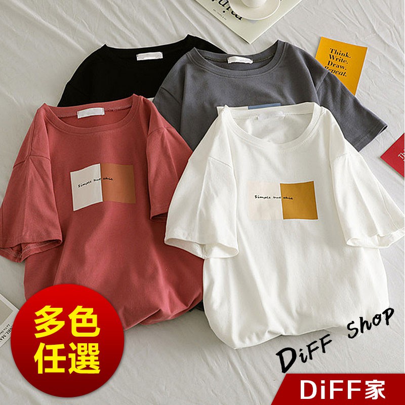 【DIFF】韓版寬鬆圓領印花短袖上衣 連衣裙 下半身失蹤 短袖t恤 女裝 顯瘦上衣 衣服 寬鬆上衣【T323】【T323】灰色|【T323】黑色|【T323】磚紅|【T323】白色T-shirtsDiFF shop