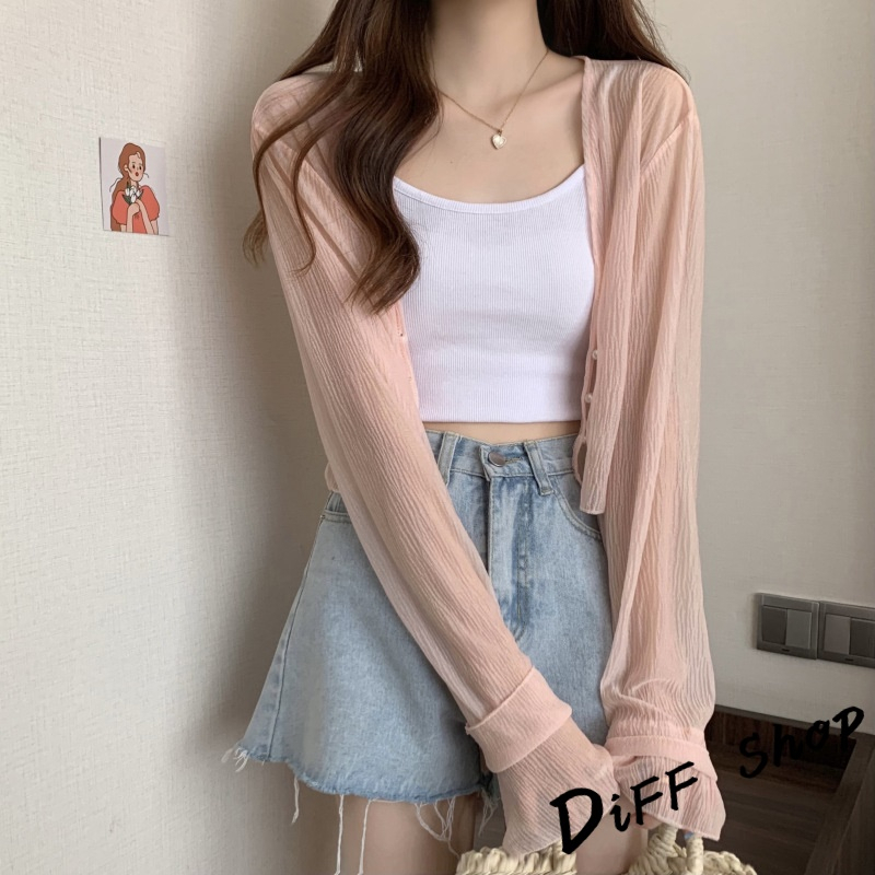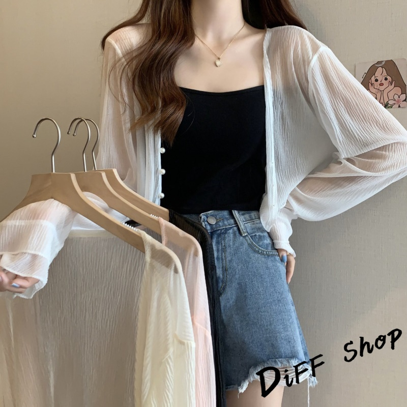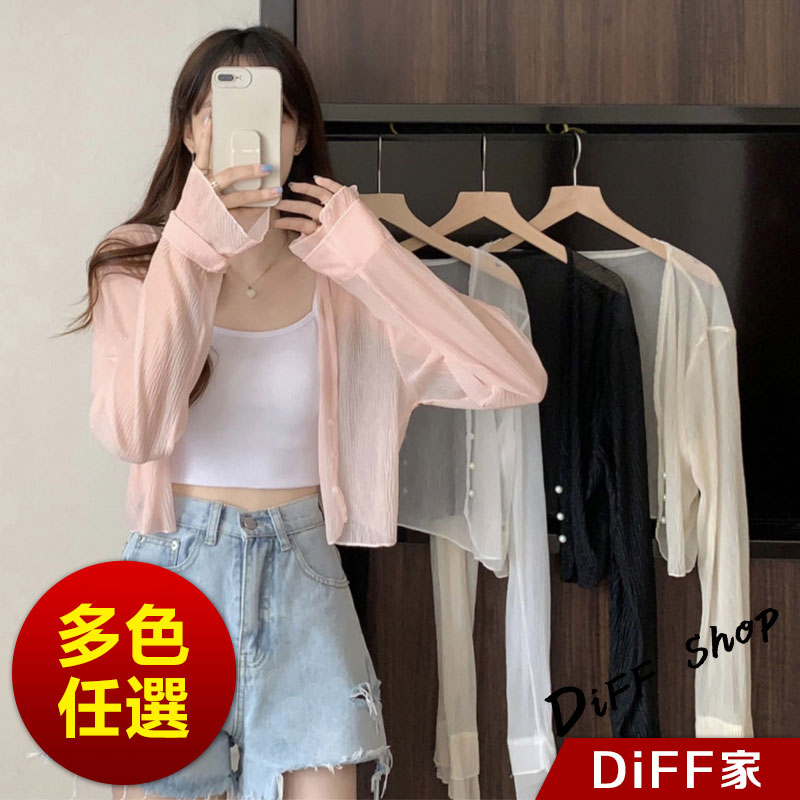 【DIFF】韓版冰絲針織防曬外套 上衣 女裝 衣服 外套 長袖上衣 薄外套 罩衫【J277】【J277】白色|【J277】黑色|【J277】粉色|【J277】杏色DiFF shop