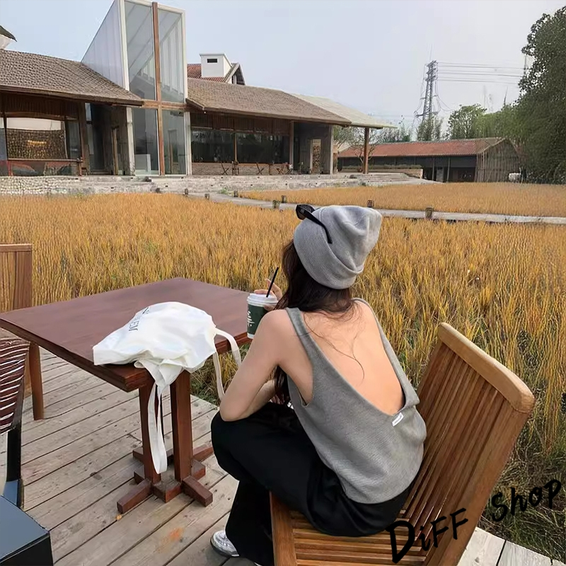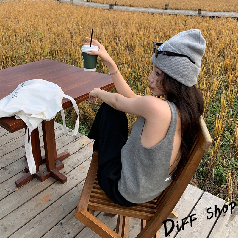 【DIFF】韓版大露背設計感針織背心 針織上衣 小可愛 女裝 衣服 短版上衣 短板上衣 夏天女裝 【V372】【V372】灰色|【V372】黑色Tanks & CamisolesDiFF shop