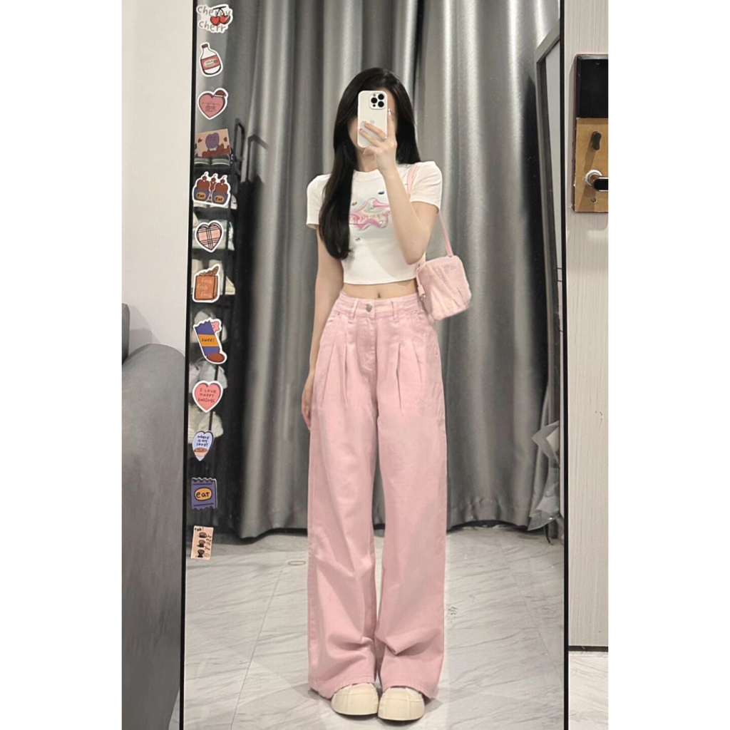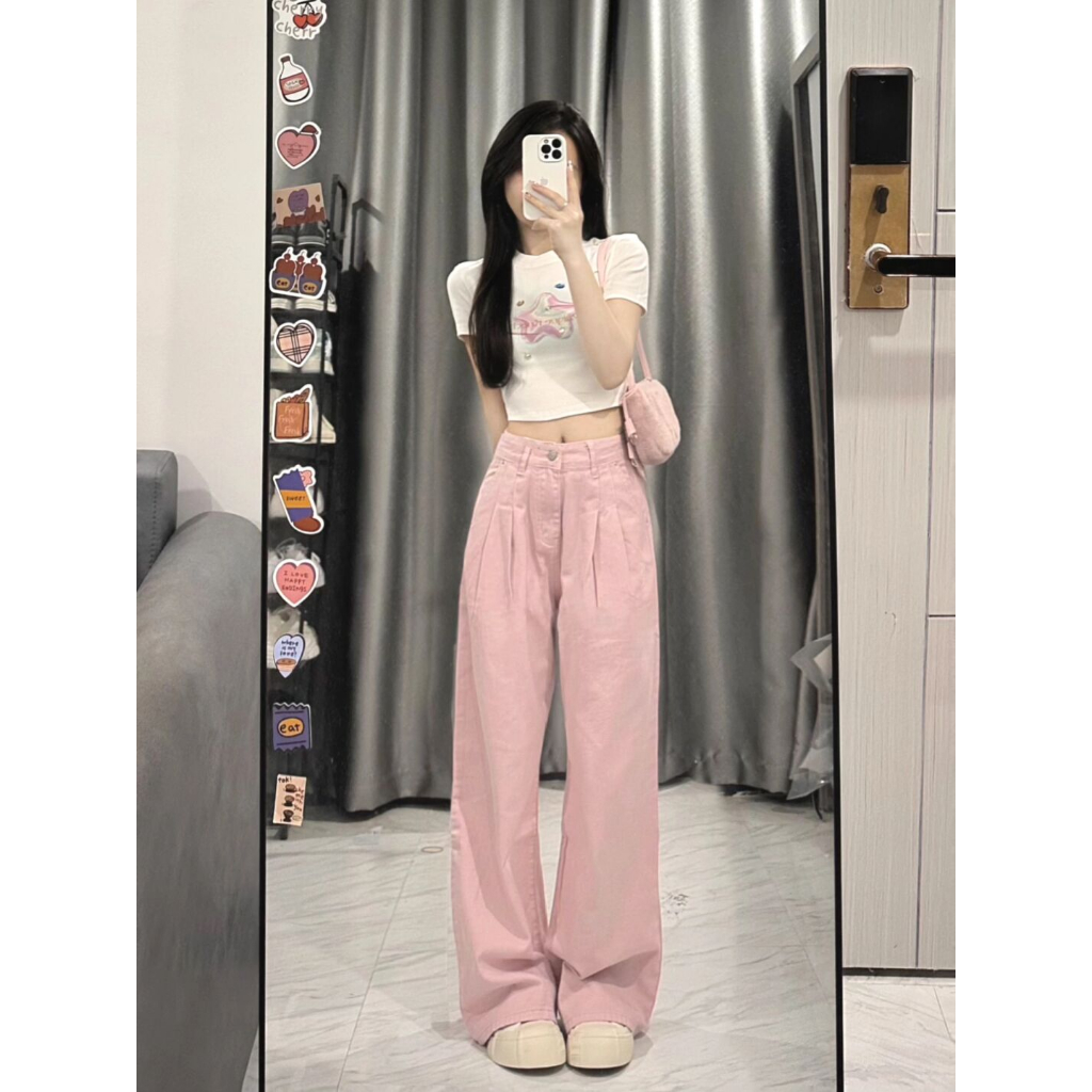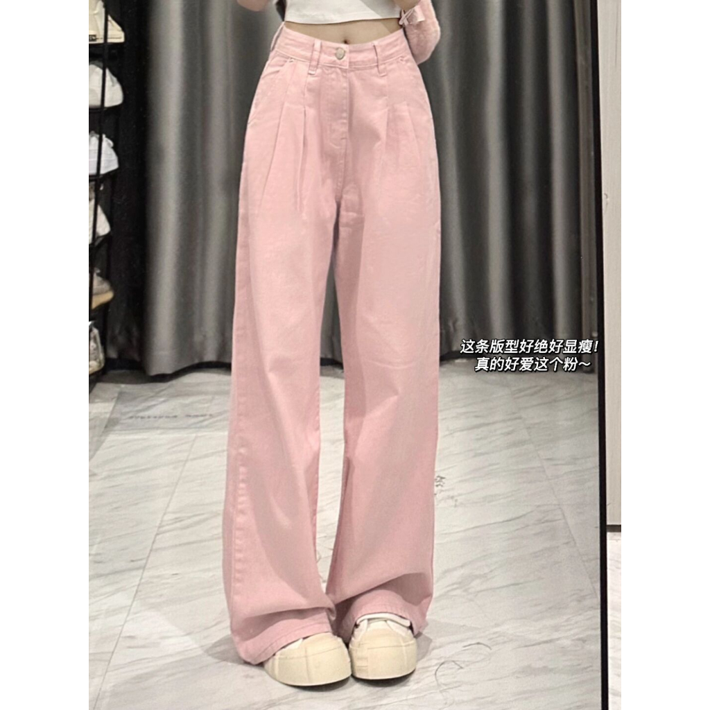 上身巨顯瘦!長褲 牛仔褲 顯瘦牛仔褲 顯瘦闊腿褲 拖地褲 長腿褲 梨形身材褲子 牛仔长裤 裤子女 阔腿裤 弹性牛仔裤粉色,S|粉色,M|粉色,L|粉色,XLCHAOO 台北原創服飾品牌