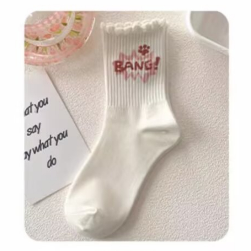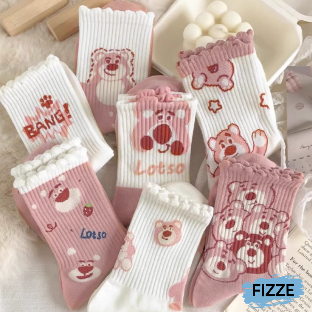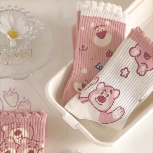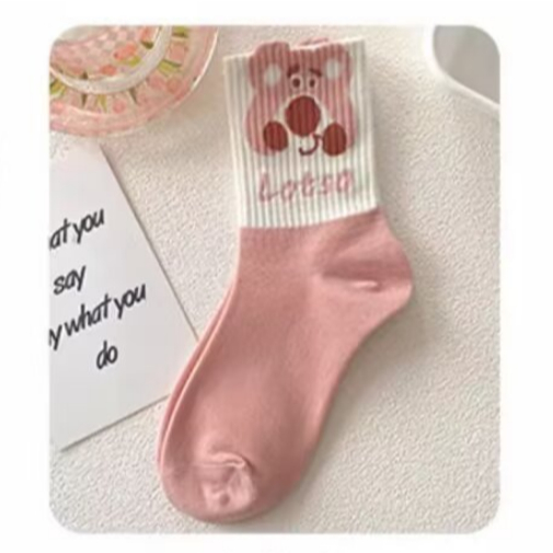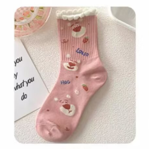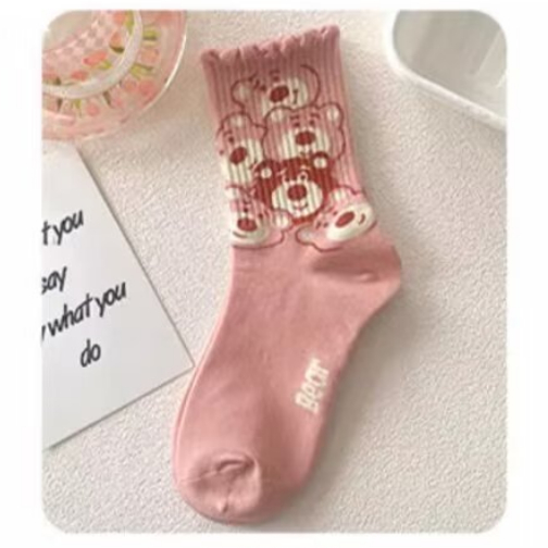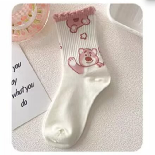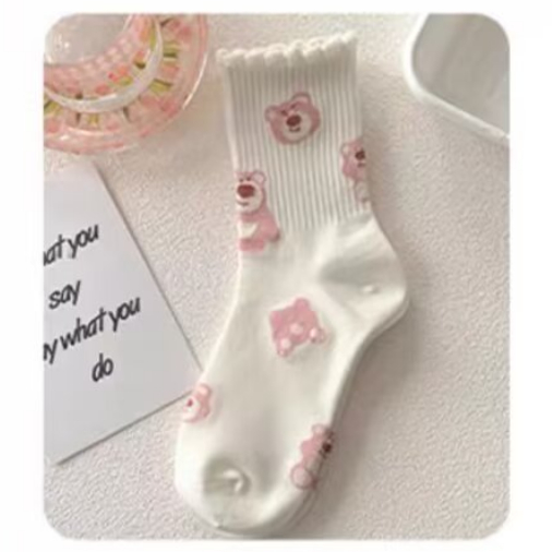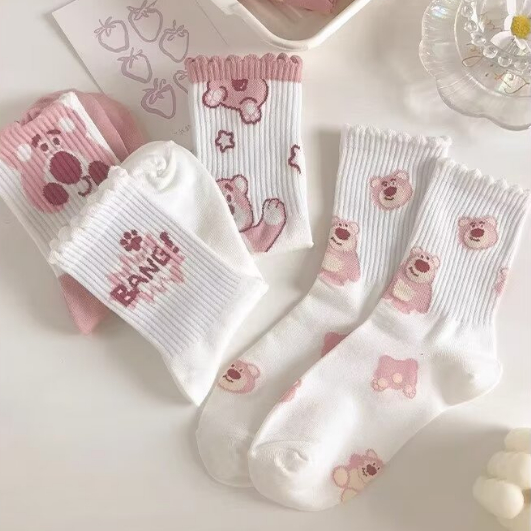 創意卡通 粉白色系 長襪 中筒襪 長筒襪女襪子 學院風 棉襪 高筒棉襪 百搭 可愛 中筒棉襪 AWL702【FIZZE】虛線熊|BANG|草莓熊|大頭熊|星星熊|多頭熊|滿印熊SocksFIZZE