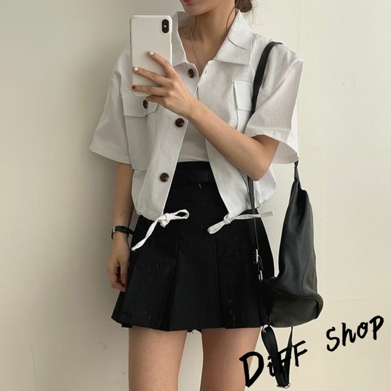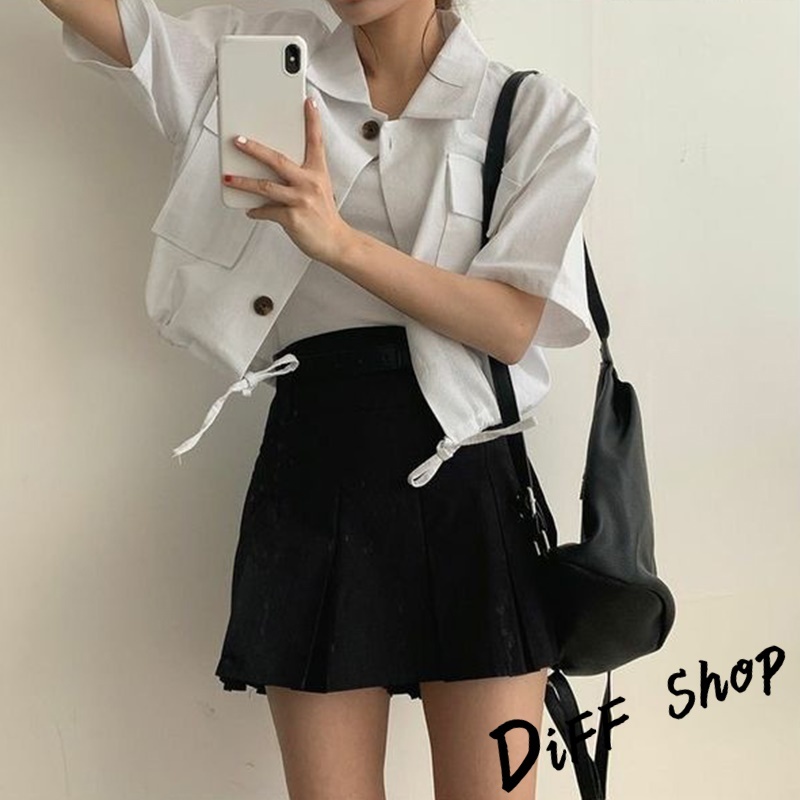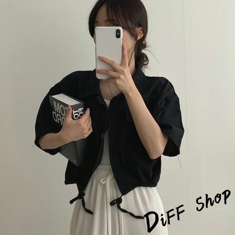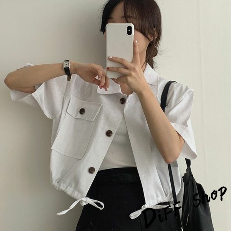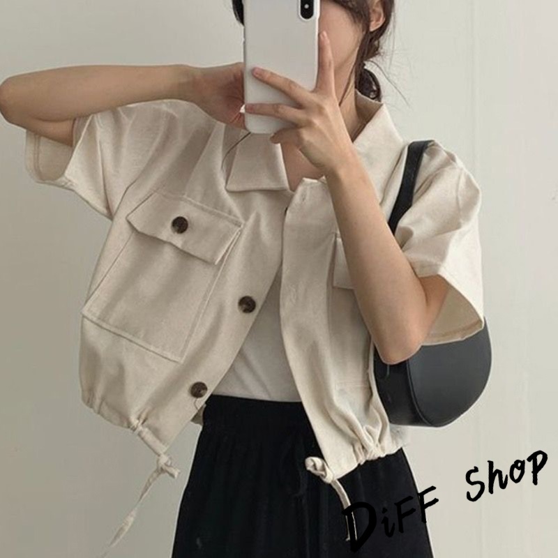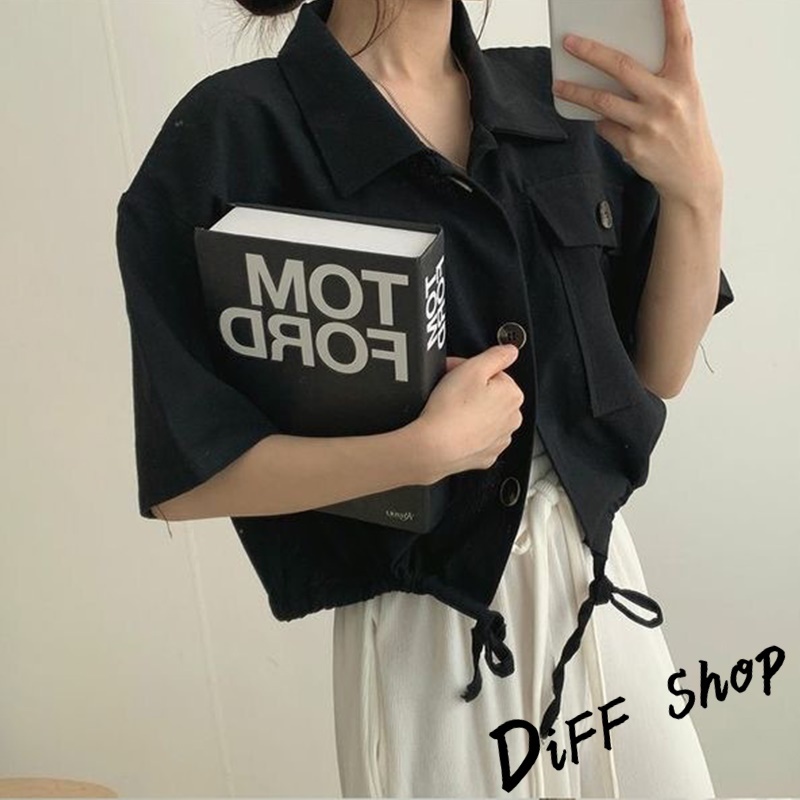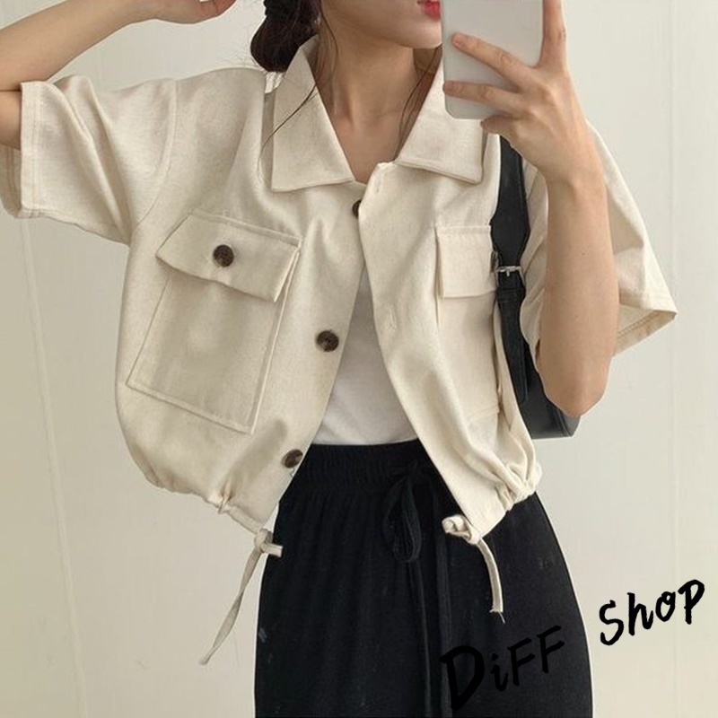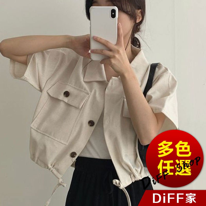 【DIFF】韓版復古設計感工裝短版外套 襯衫 上衣 女裝 衣服 薄外套 罩衫 防曬外套 工作服【J333】【J333】黑色|【J333】白色|【J333】杏色Shirts & BlousesDiFF shop