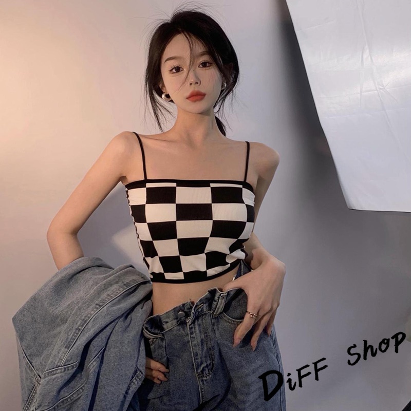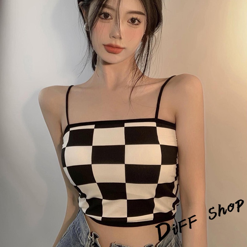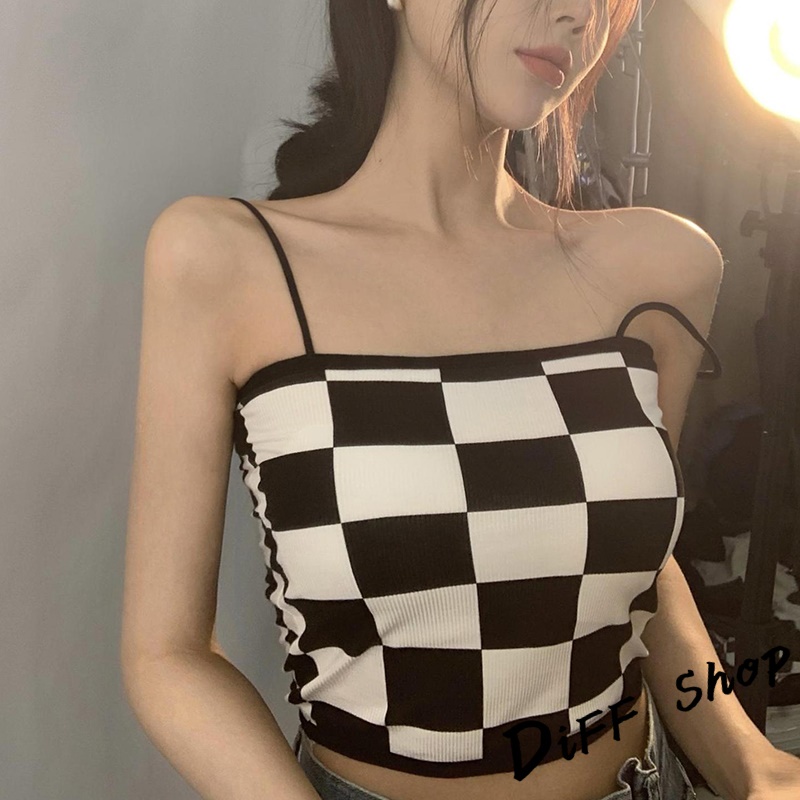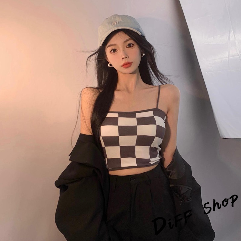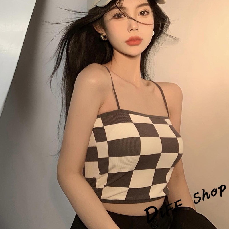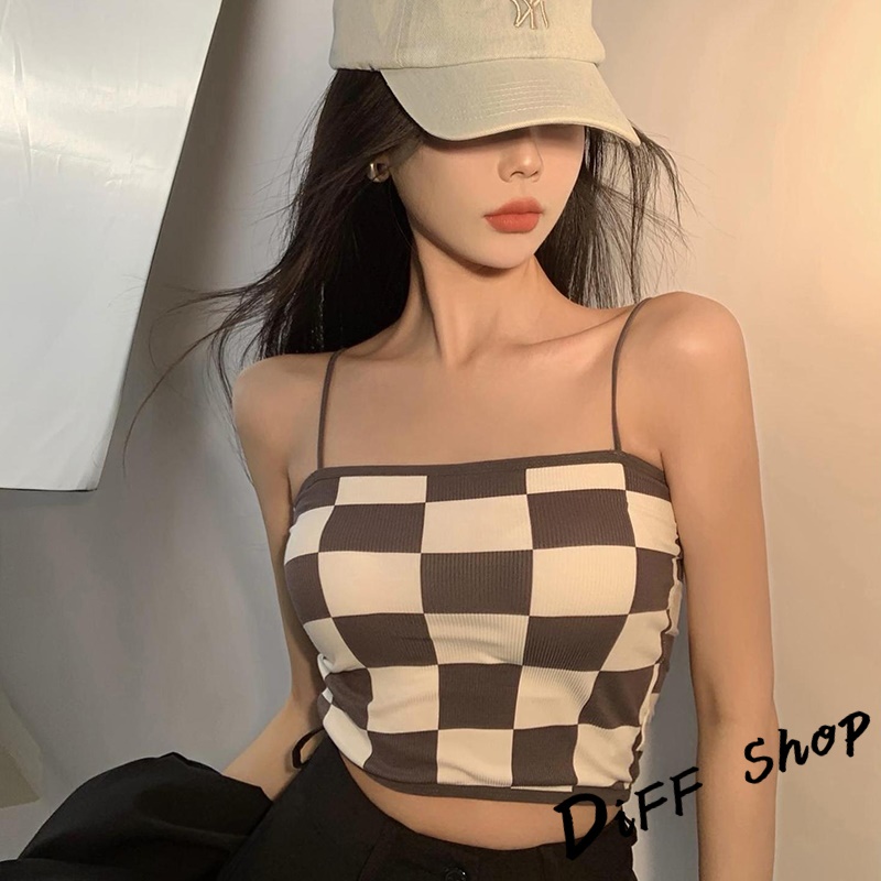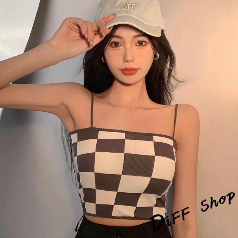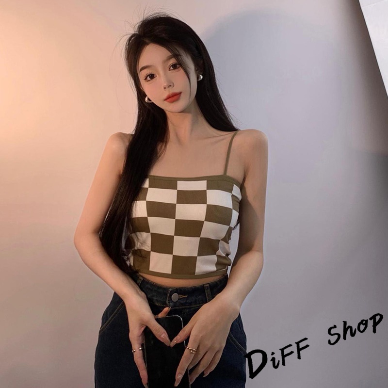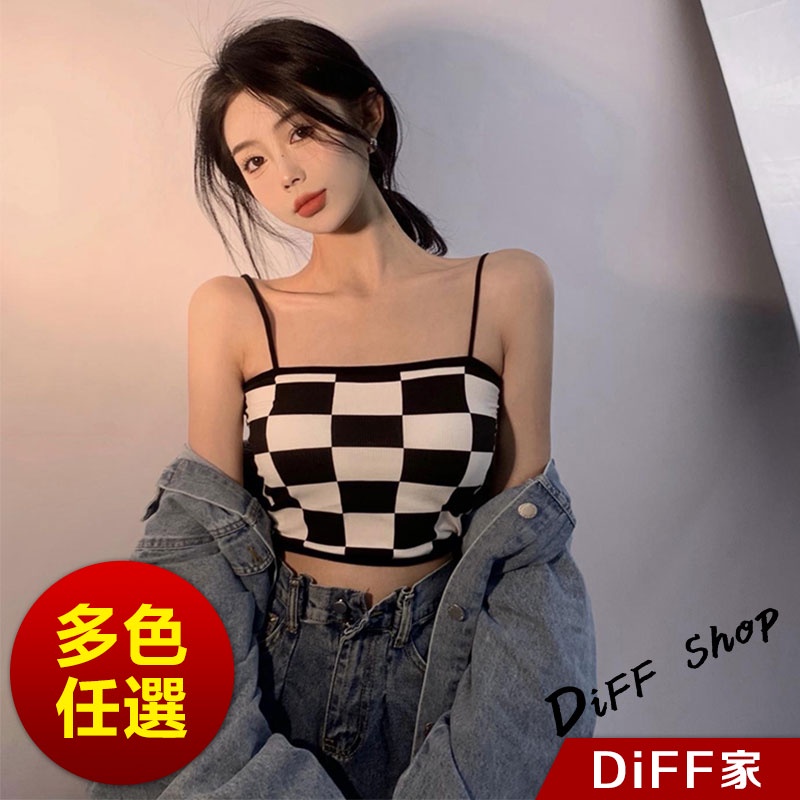 【DIFF】韓版格子針織修身短版背心 帶胸墊免穿內衣 上衣 小可愛 女裝 背心女 衣服 短版上衣【V203】【V203】黑色|【V203】咖啡色Tanks & CamisolesDiFF shop