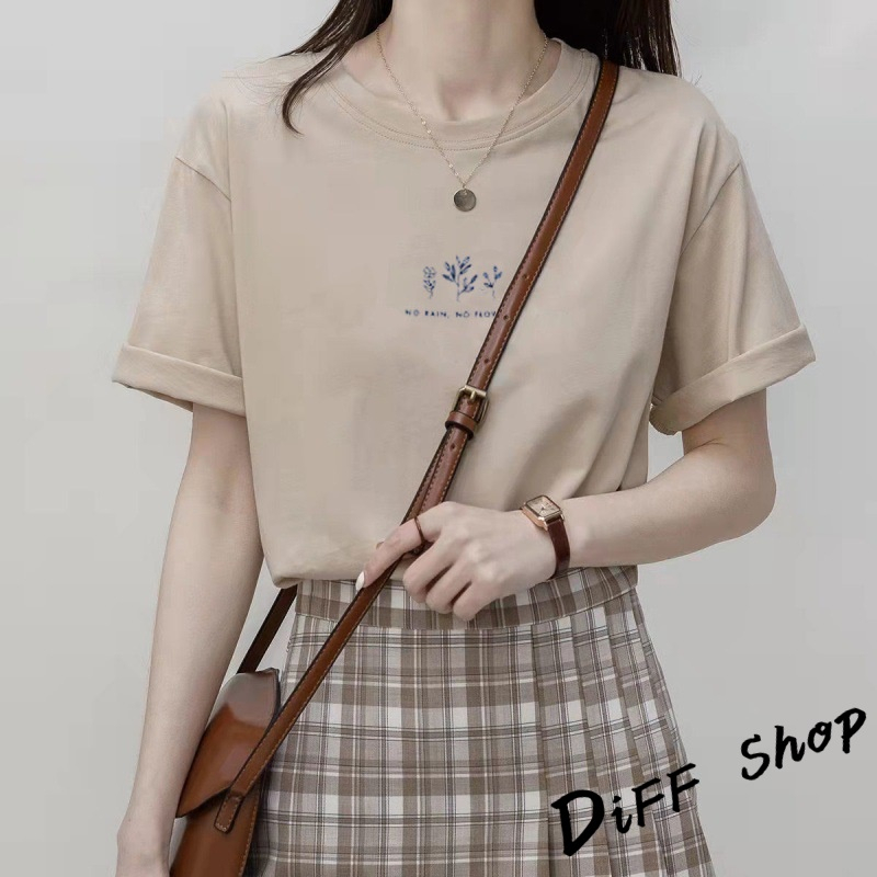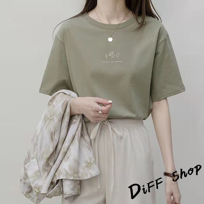 【DIFF】韓版寬鬆文青風圖案短袖上衣 短袖t恤 女裝 顯瘦上衣 衣服 寬鬆上衣 素T【T505】【T505】抹茶綠|【T505】天藍色|【T505】杏色|【T505】卡其|【T505】黑色T-shirtsDiFF shop