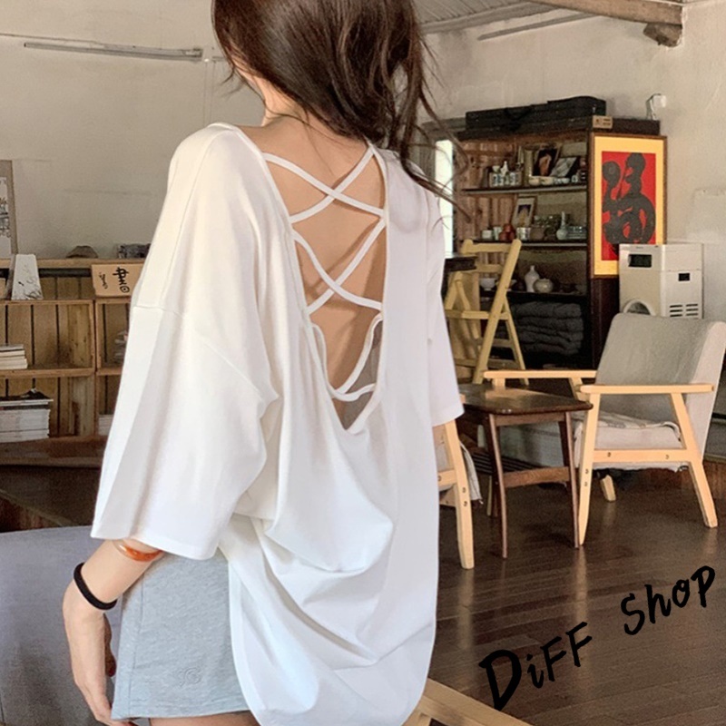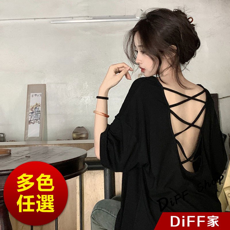 【DIFF】韓版寬鬆慵懶風露背長版上衣 短袖上衣 顯瘦上衣 衣服 夏天女裝 長版t恤 女裝 短袖t恤女【T652】