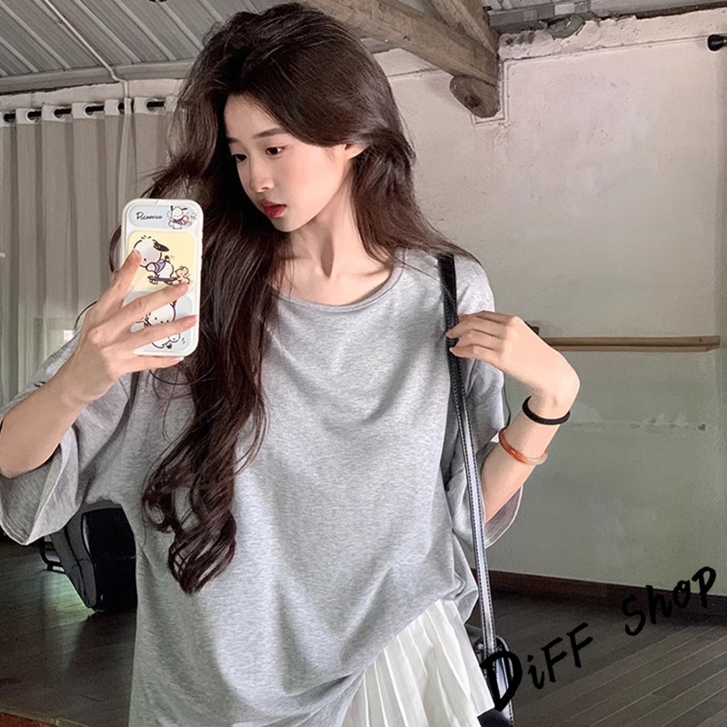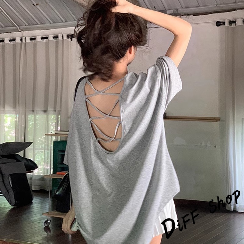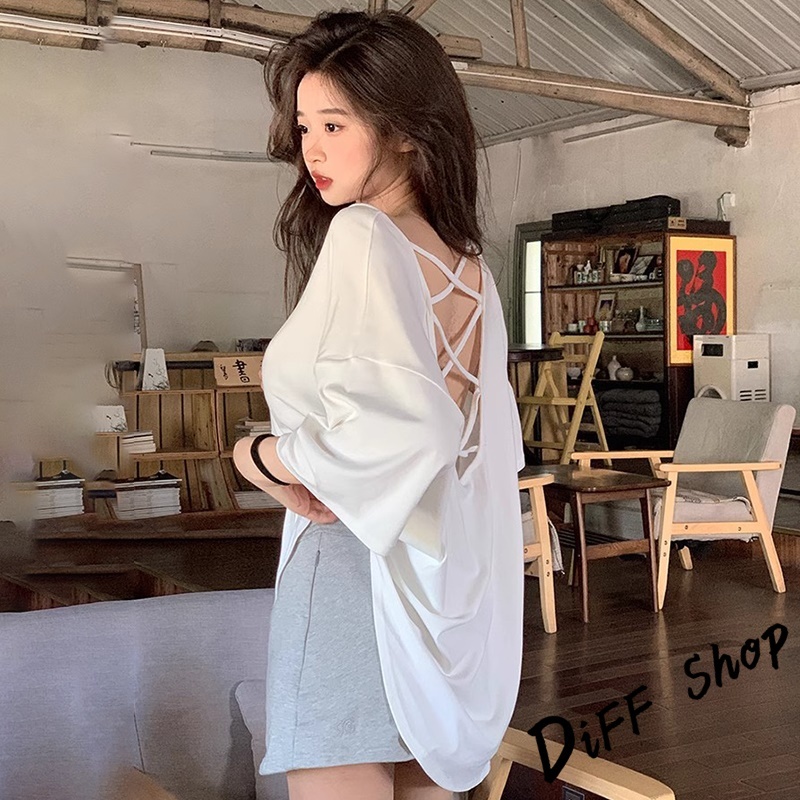 【DIFF】韓版寬鬆慵懶風露背長版上衣 短袖上衣 顯瘦上衣 衣服 夏天女裝 長版t恤 女裝 短袖t恤女【T652】【T652】白色|【T652】灰色|【T652】黑色T-shirtsDiFF shop