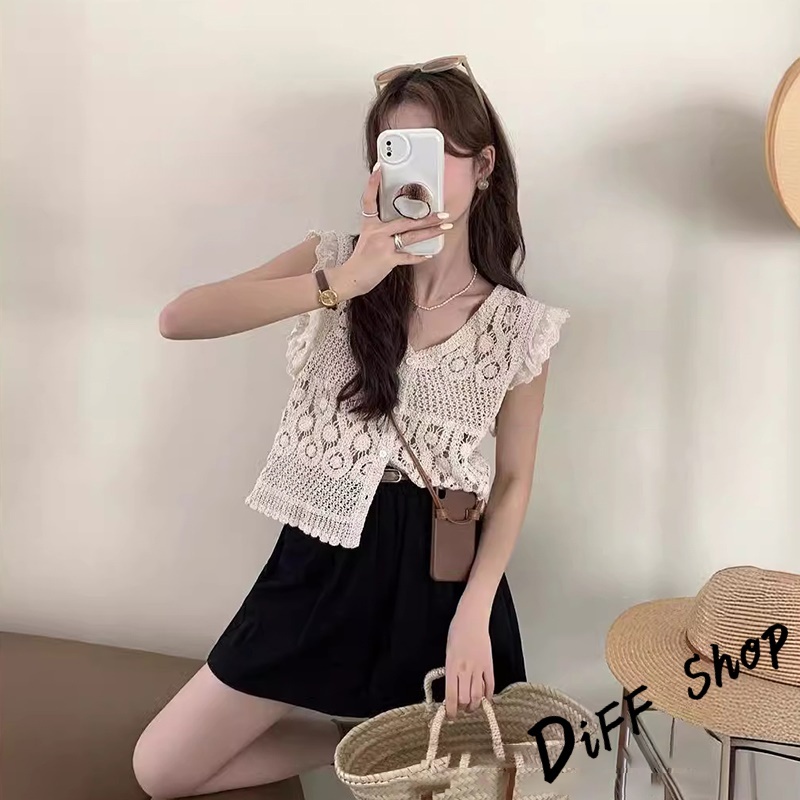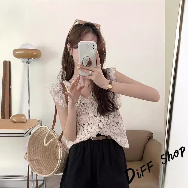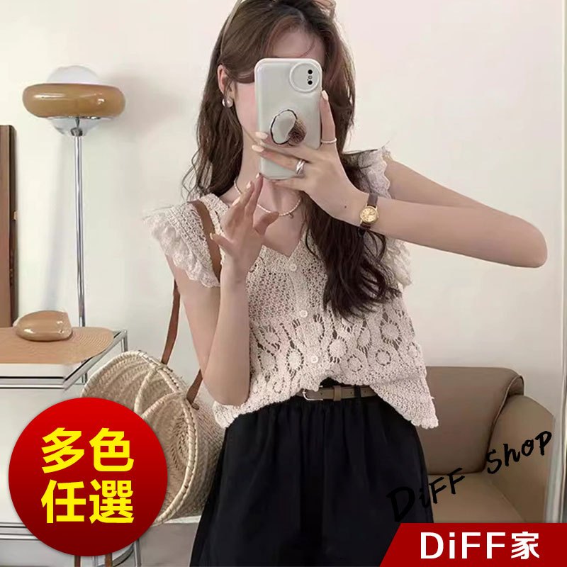 【DIFF】韓版小眾氣質V領鏤空針織背心 小可愛 女裝 衣服 短版上衣 小背心 夏天女裝【V406】【V406】白色|【V406】杏色Tanks & CamisolesDiFF shop