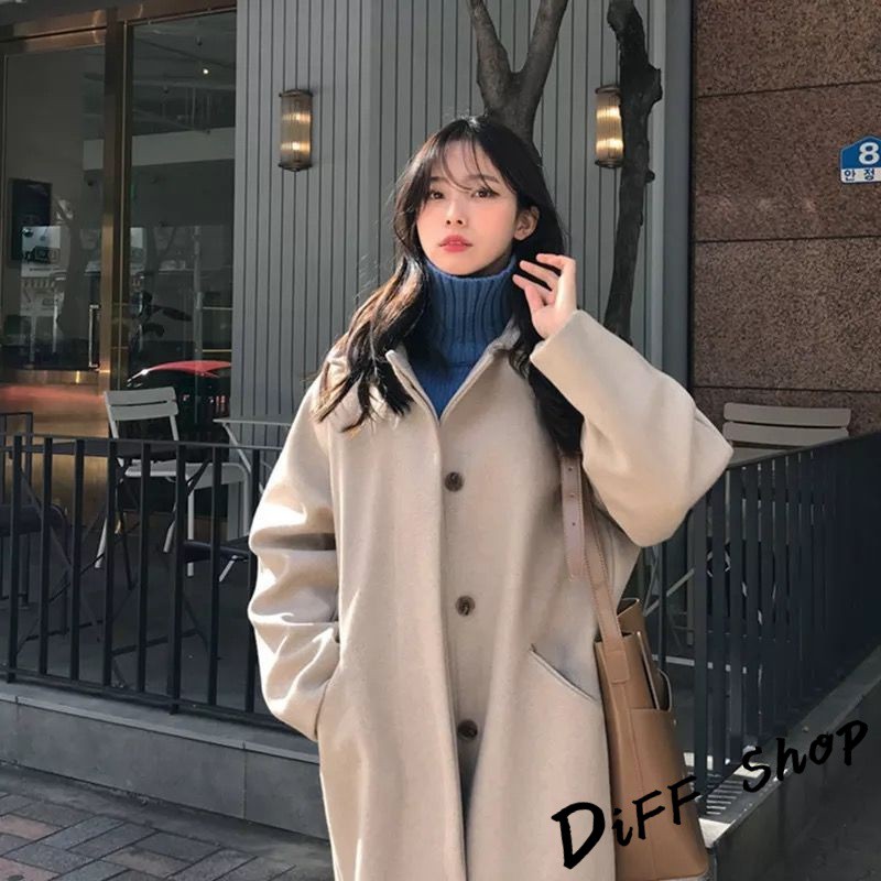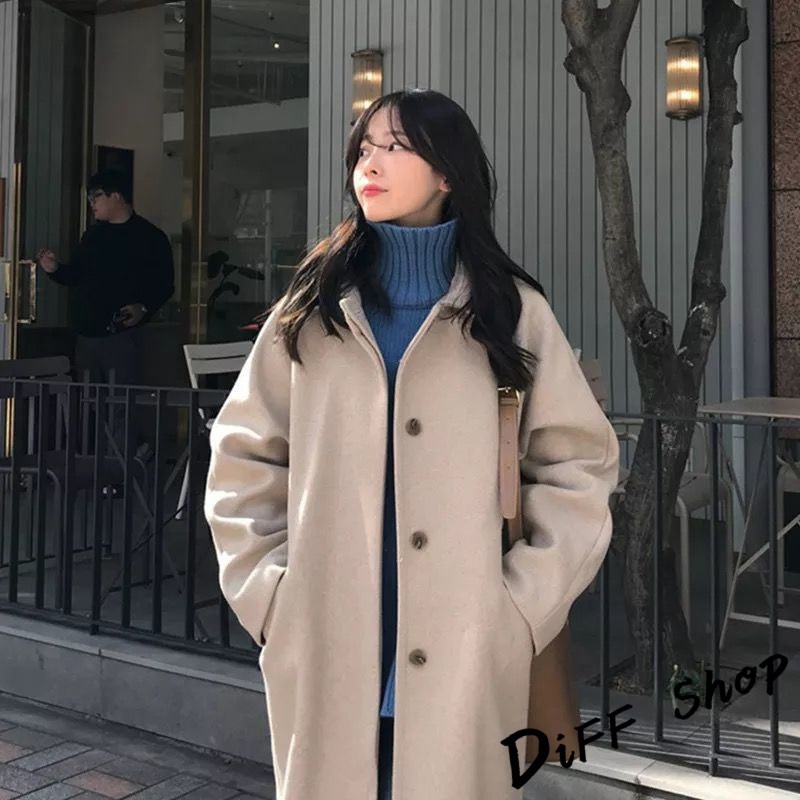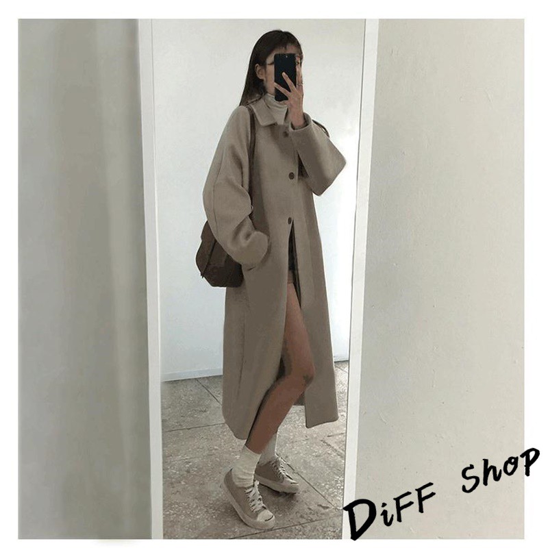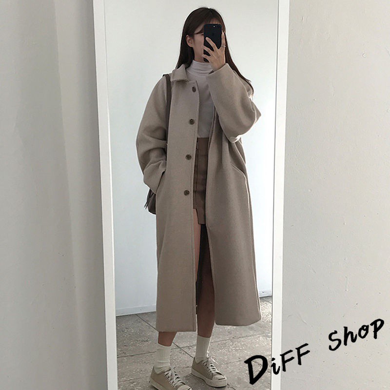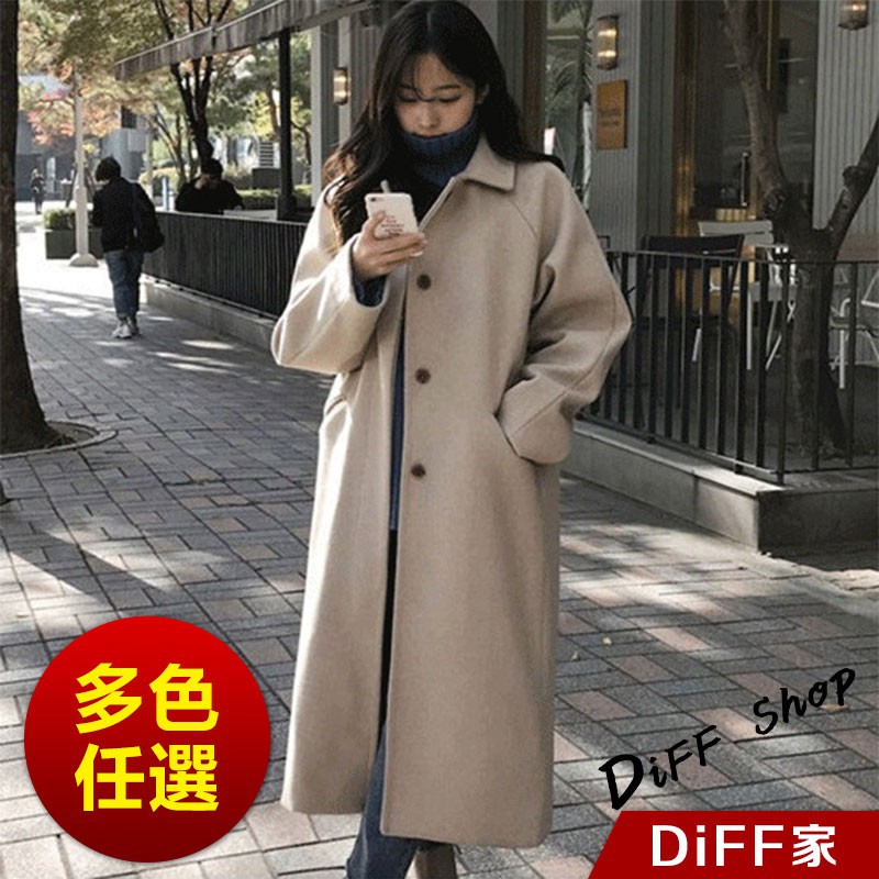 【DIFF】韓版秋冬季單排扣長版大衣外套 百搭外套 上衣 女裝 衣服 風衣 針織外套 防風 長版外套【J114】【J114】杏色|【J114】黑色Winter Jackets & CoatsDiFF shop